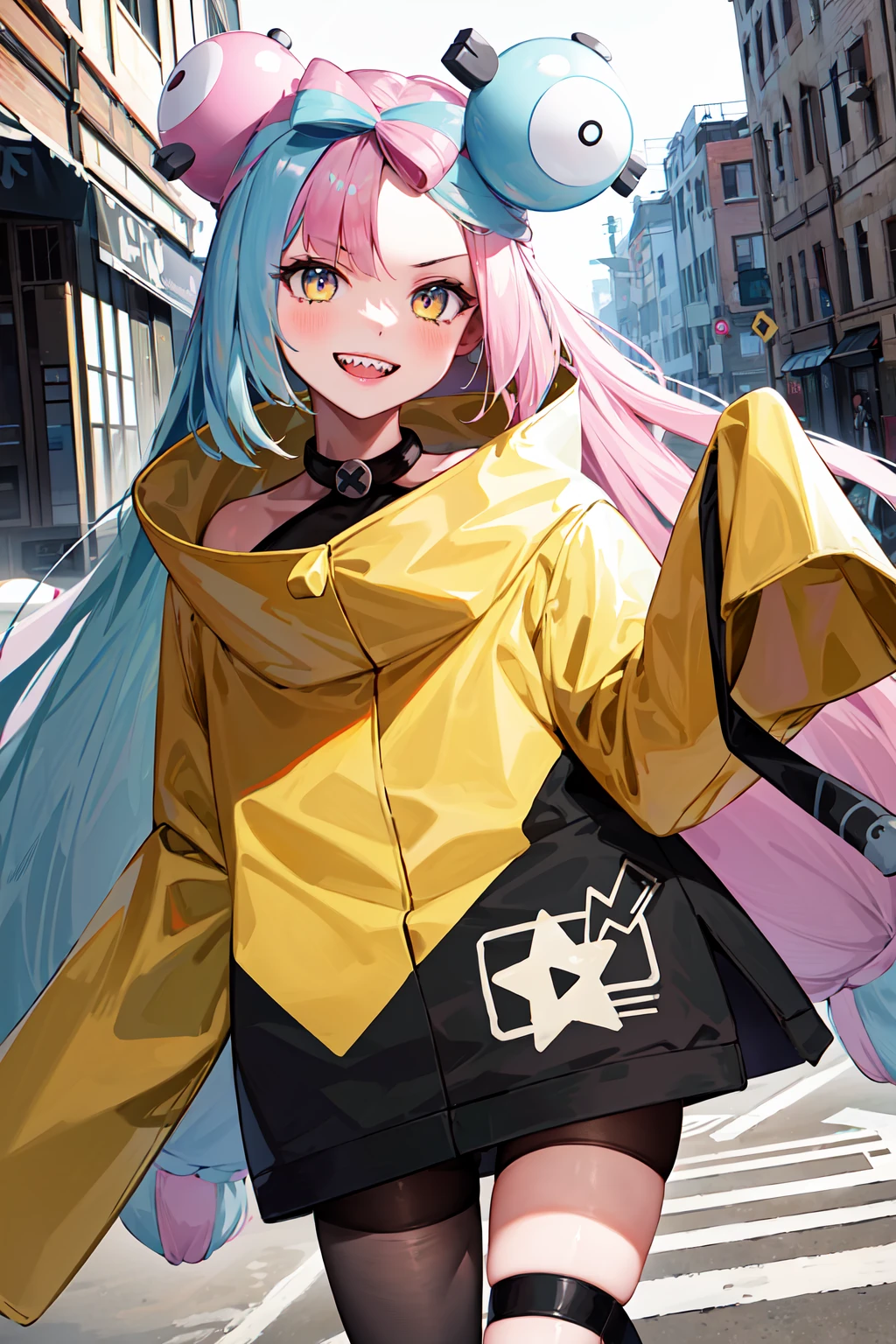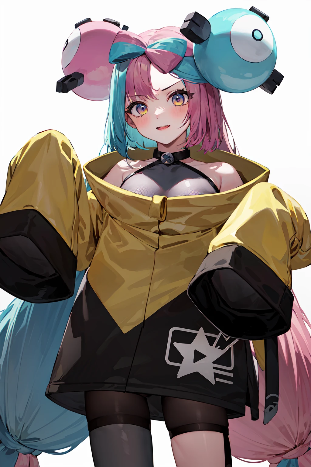 iono1, long hair, yellow jacket, long sleeves, hair ornament