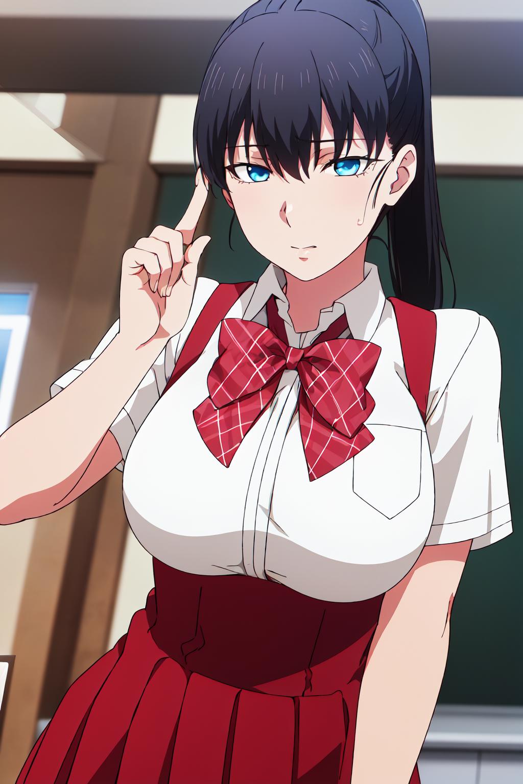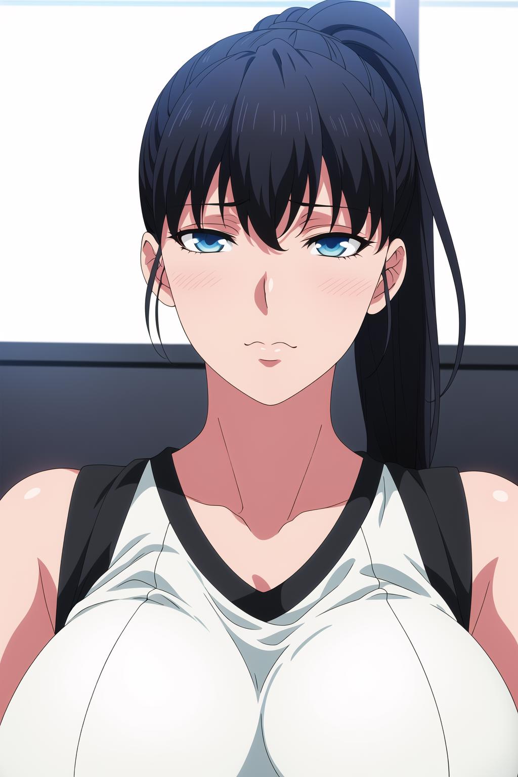 Black_Hair,blue eyes,ponytail,bangs,long hair,