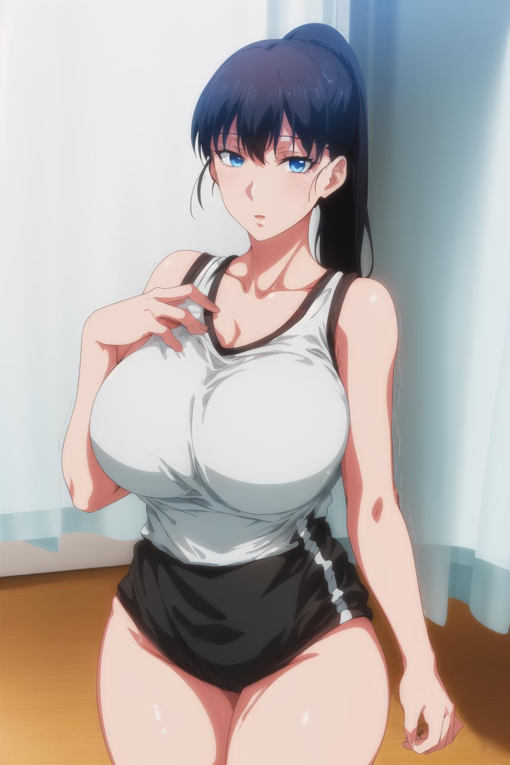 ???? shoulders,Green_sportswear,sleeveless,collarbone,Black_Shorts,