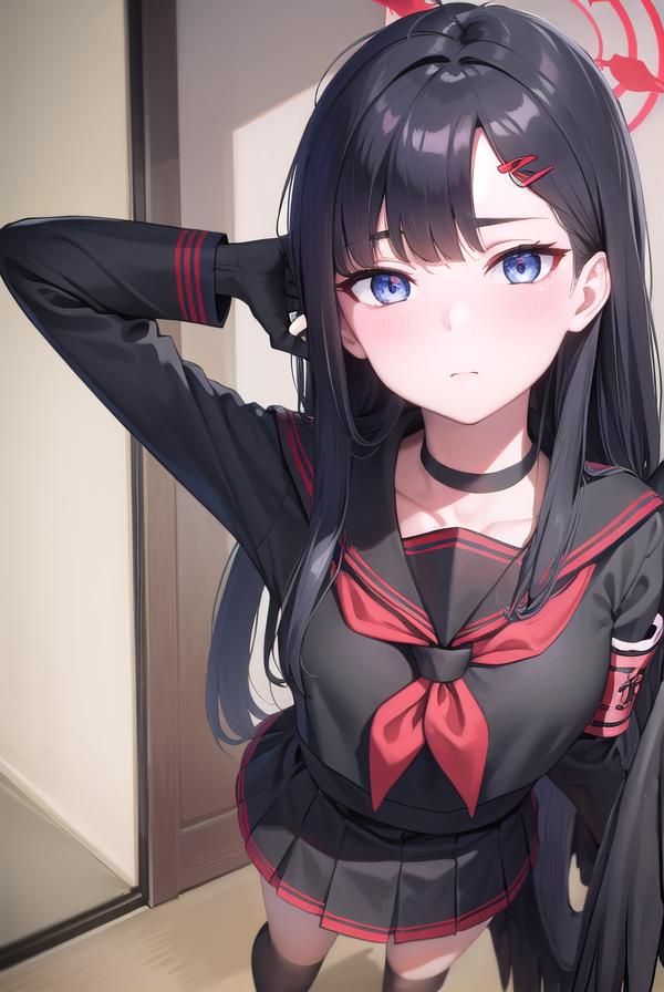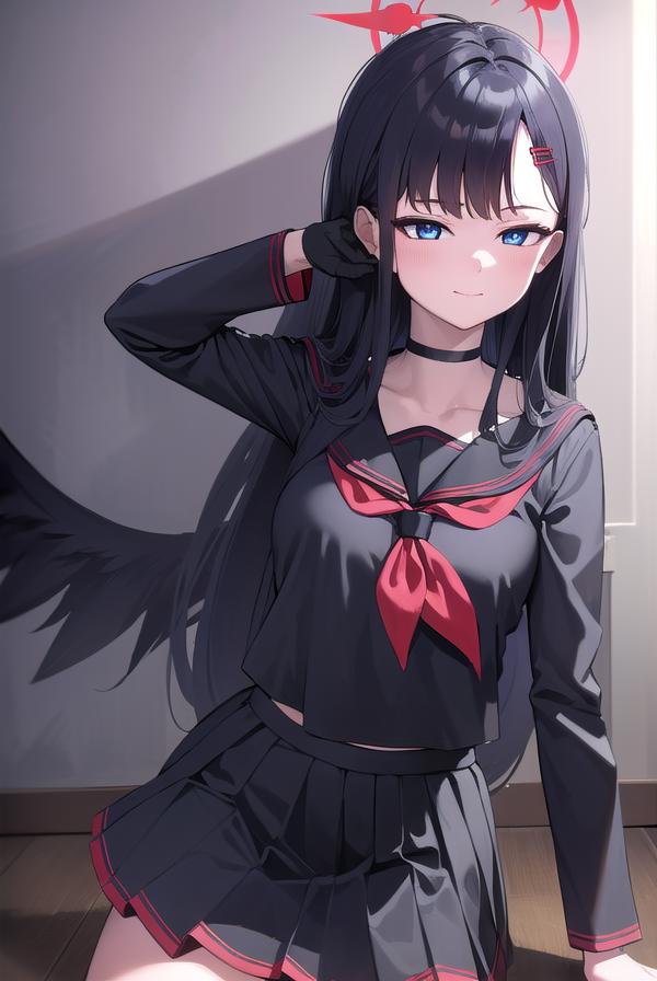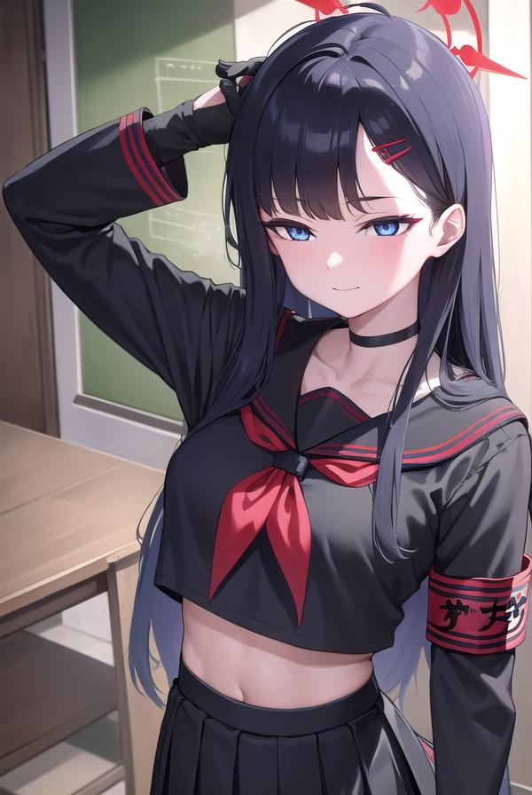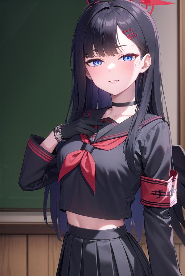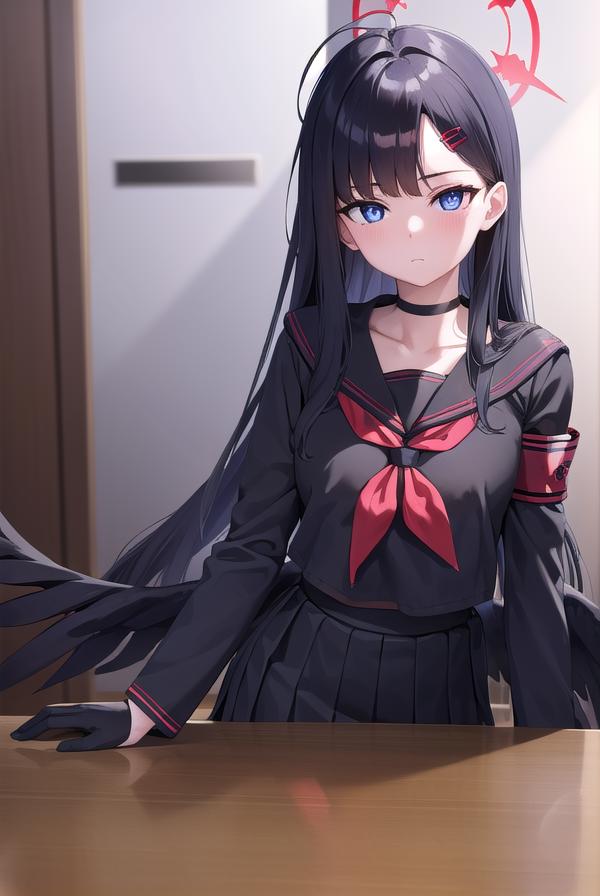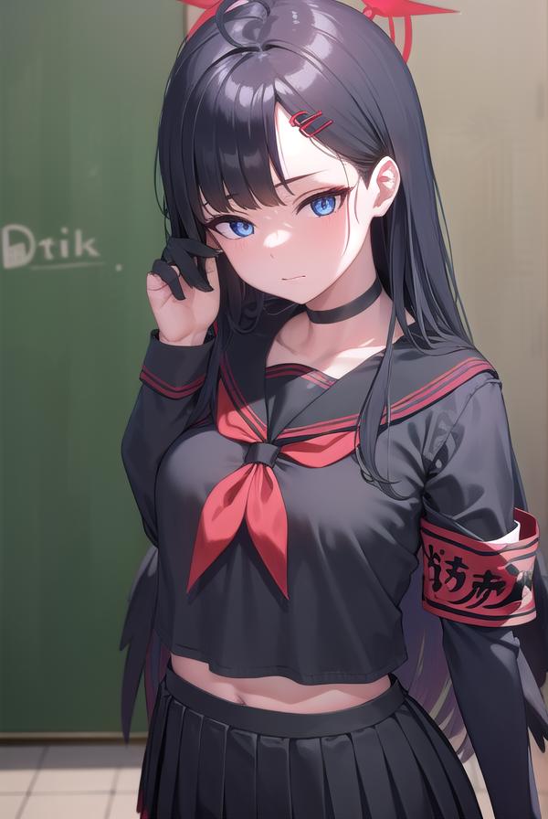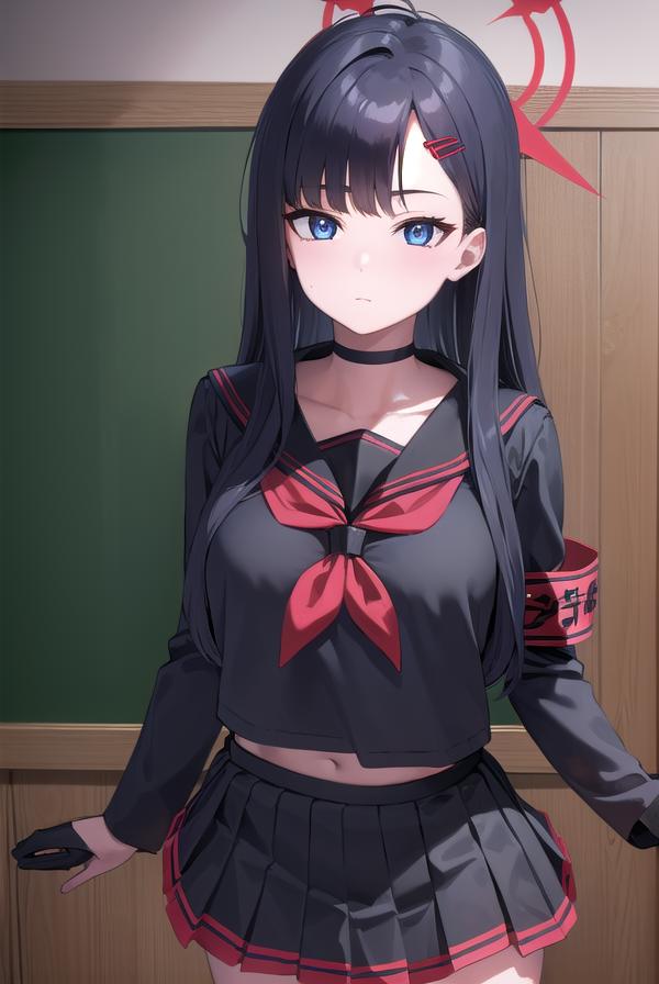 armband, black choker, black gloves, black sailor collar, black serafuku, black skirt, choker, gloves, long sleeves, neckerchief, pleated skirt, red neckerchief, safety pin, sailor collar, school uniform, serafuku, skirt,