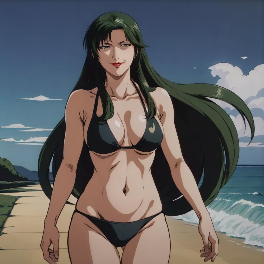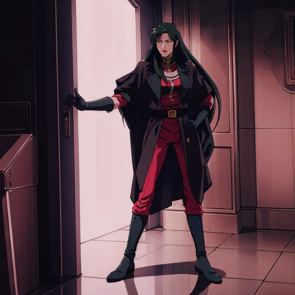 long hair,green hair,sidelocks,black eyes,lipstick,