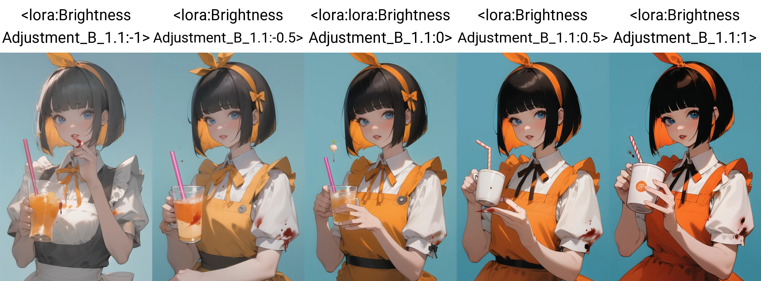 亮度调整 我的朋友希望有一个只调整画面暗区而不改变亮区太多明暗的方式。 同时也不会对画面做太多改变的"LORA",所以制作了这个。 在-1到1之间都有明显的效果,负值可以照亮暗区,正值可以加深暗区。 可以在真实或动漫类型中使用。使用时如果有画面破损,请尝试调整"LoRA Block Weight"进行调整或将图片放大。 使用时请遵守您所在地区的法律,不要伤害他人并且违法。如果对这个LORA有改进的想法,欢迎留言。