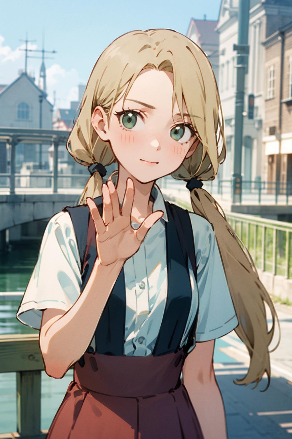 murashige_yuzuki, 1girl,solo,long hair,blonde hair,green eyes