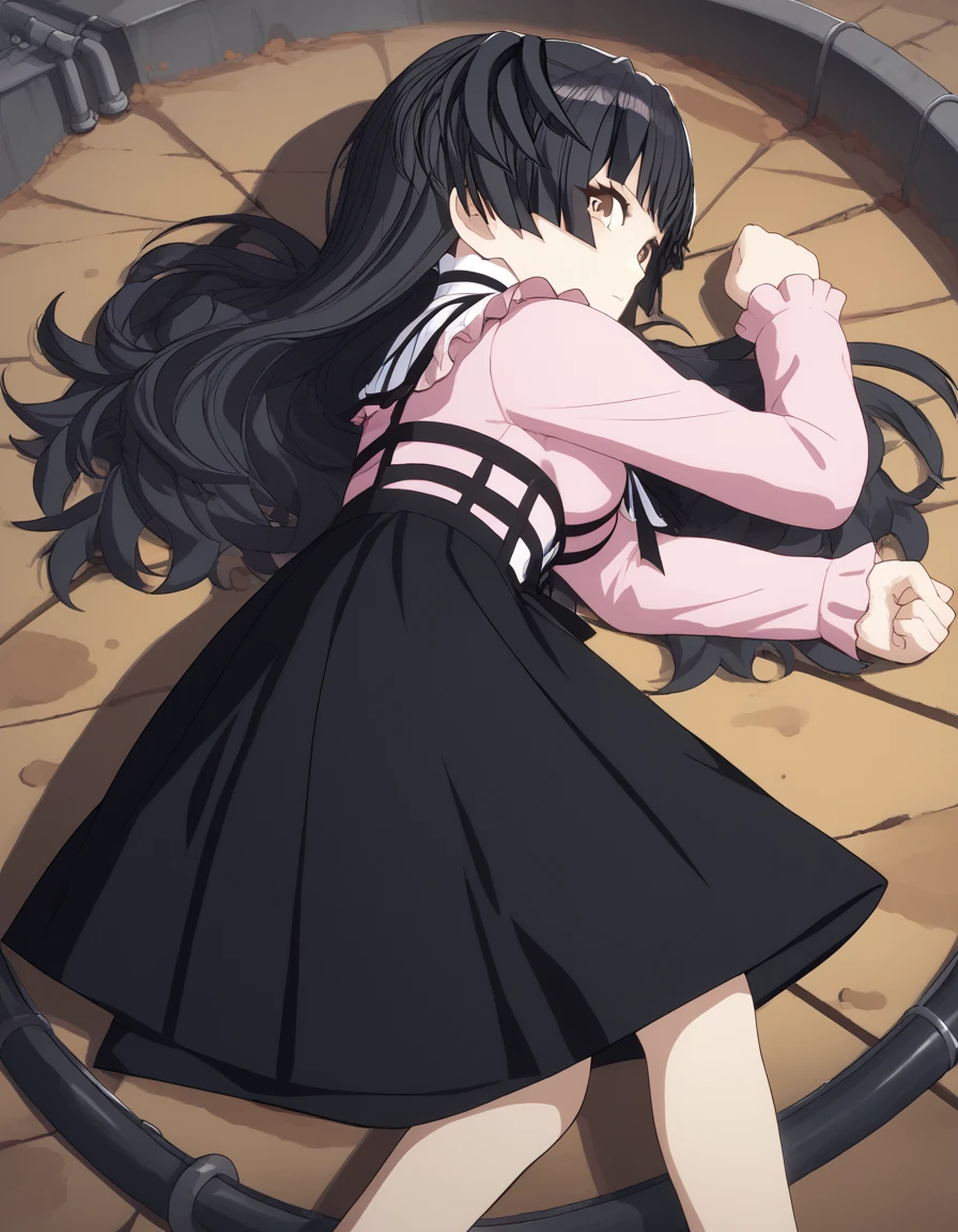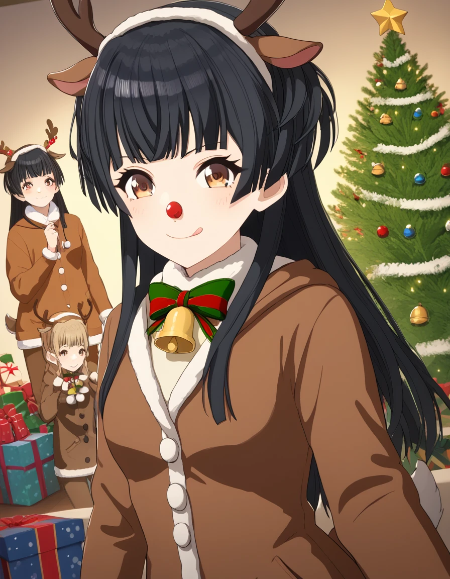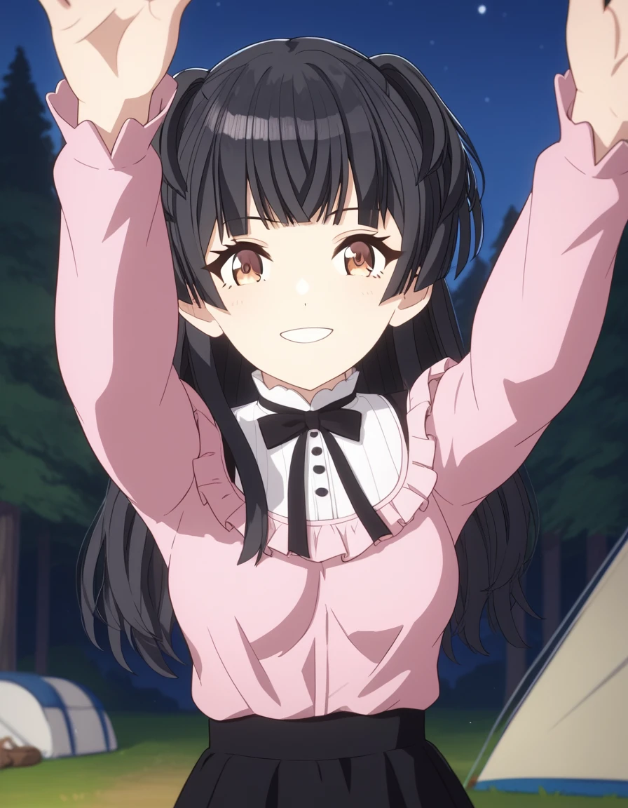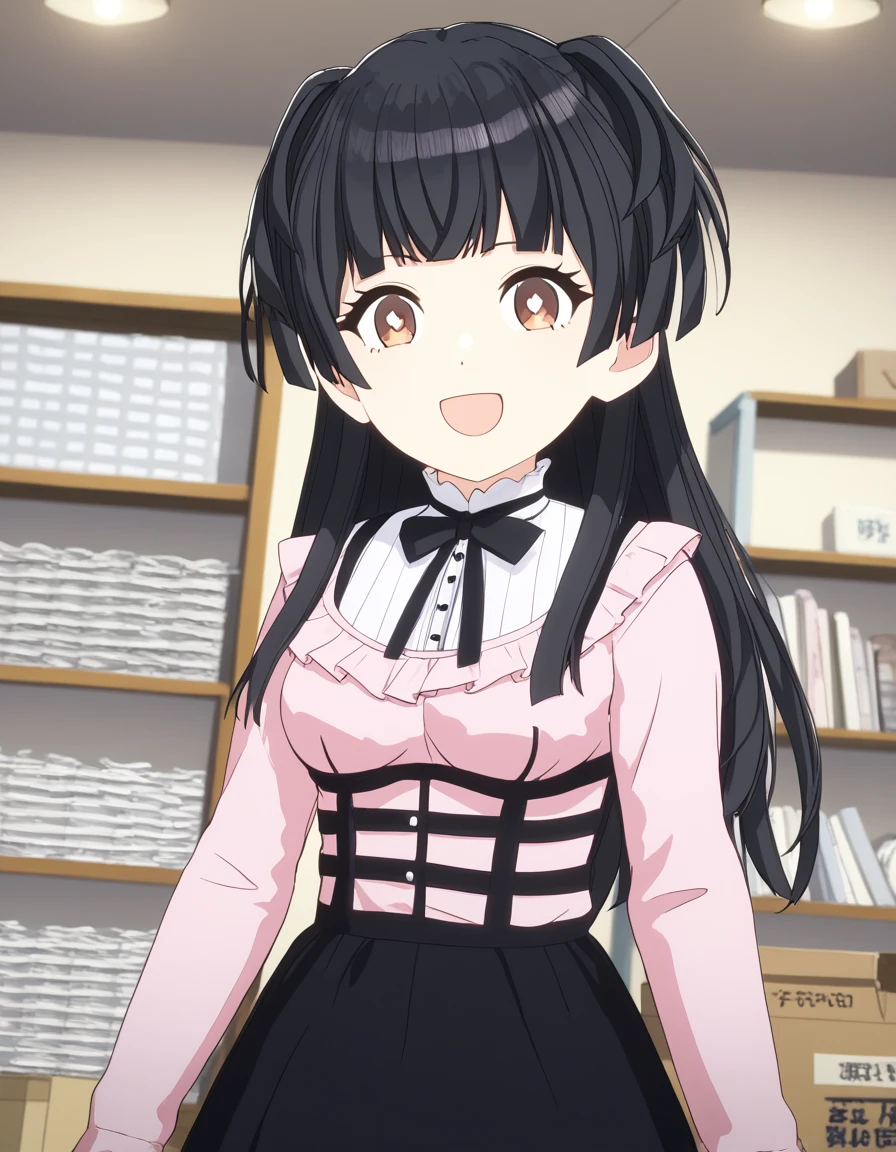 fuyuko mayuzumi, black hair, brown eyes, long hair, two side up,