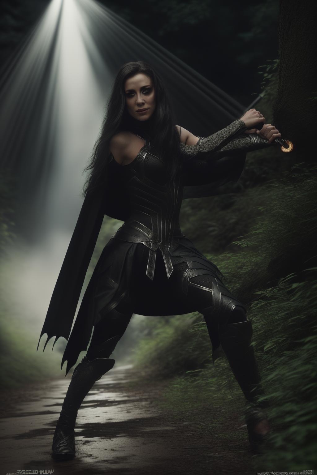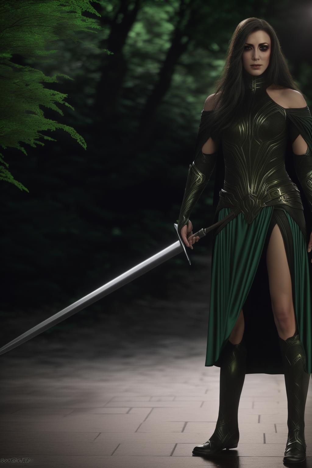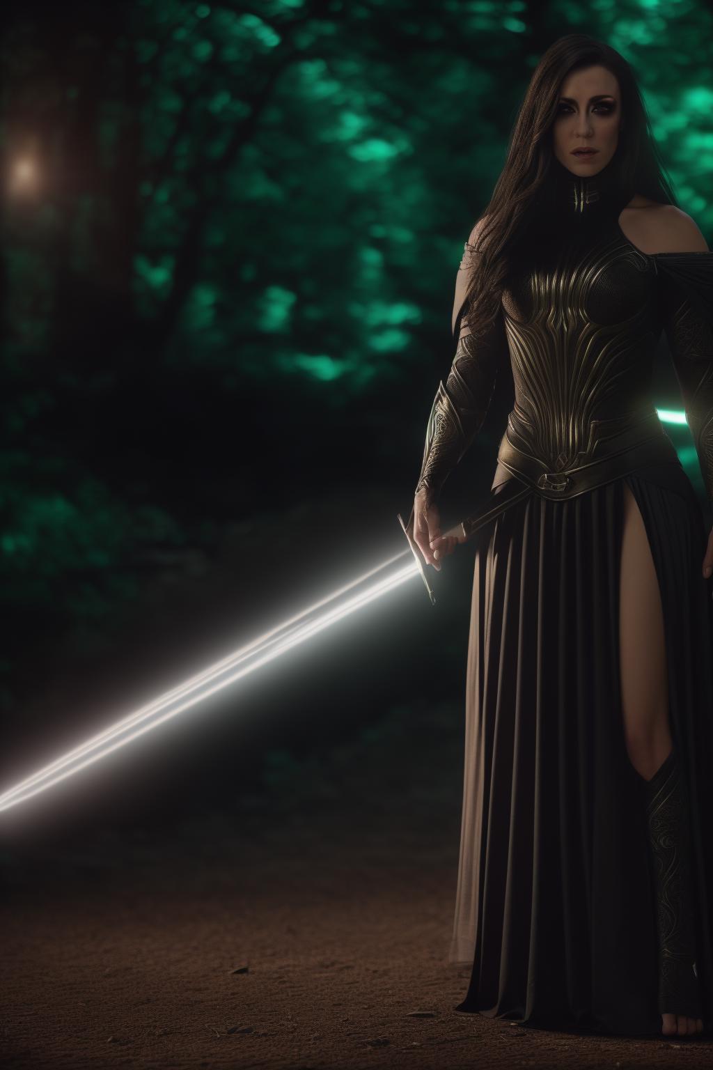 Please use a resolution of 512x768 or similar aspect ratio. It is highly likely that SD will not render the fingers correctly, in particular those gripping the hilt, so manual adjustment or inpainting is recommended.