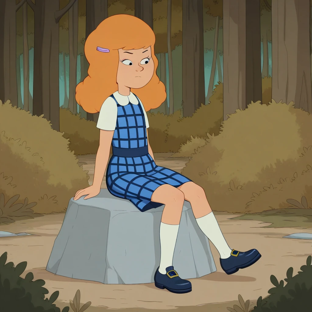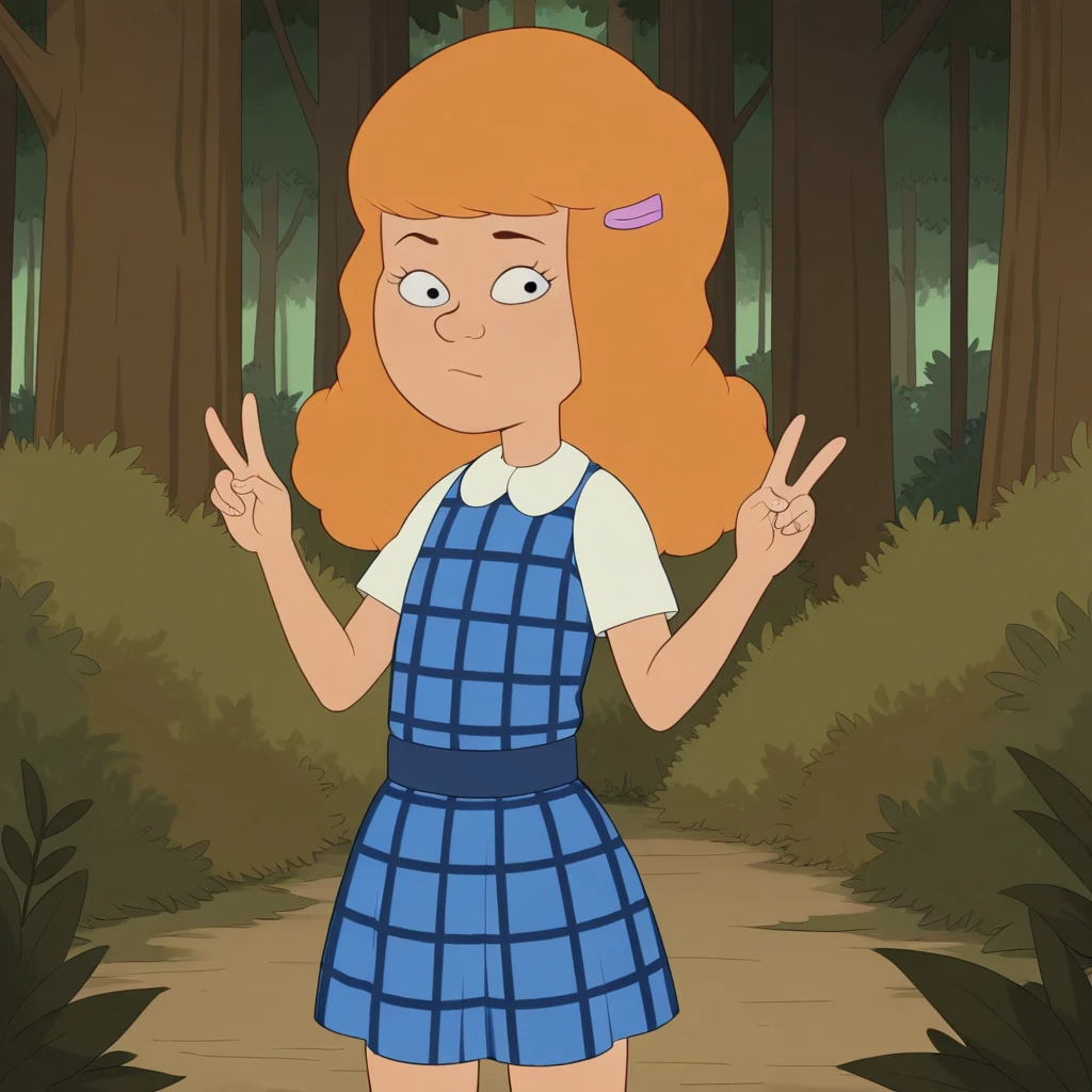 BridgetFitzsimmons, solo, 1girl, solo, orange hair, black eyes, hairclip,
