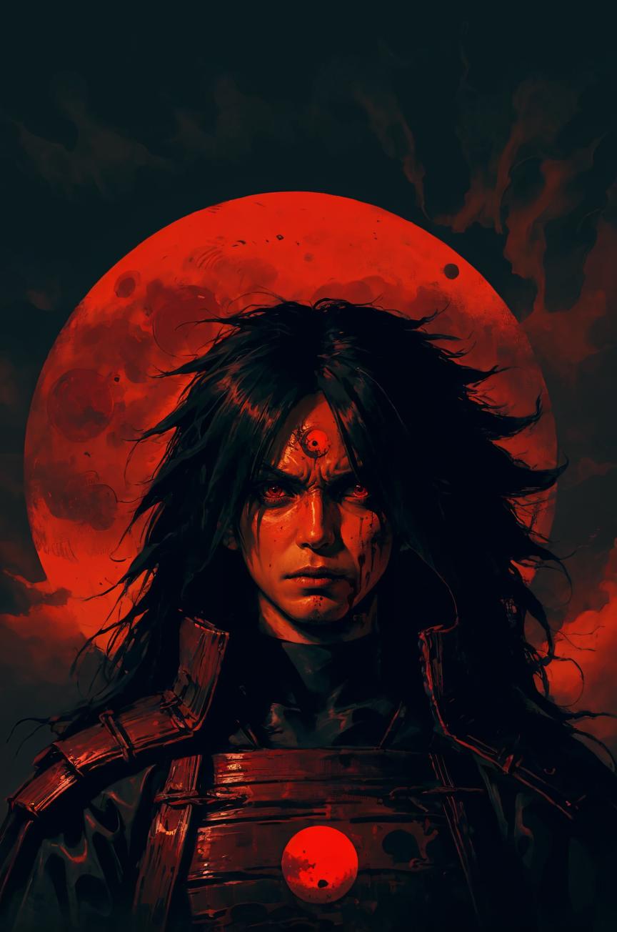 Trigger + Appearance: uchiha madara, long hair, hair over one eye