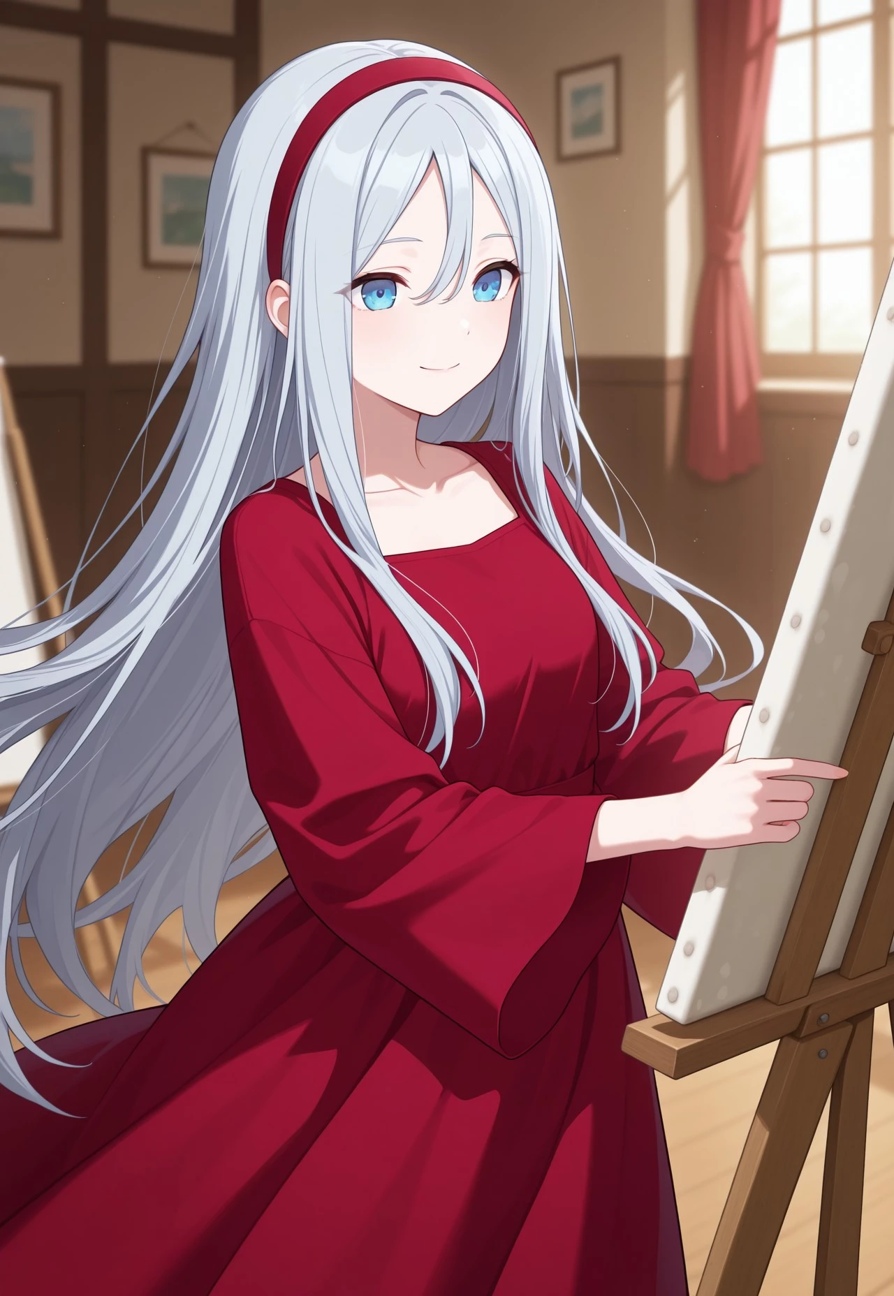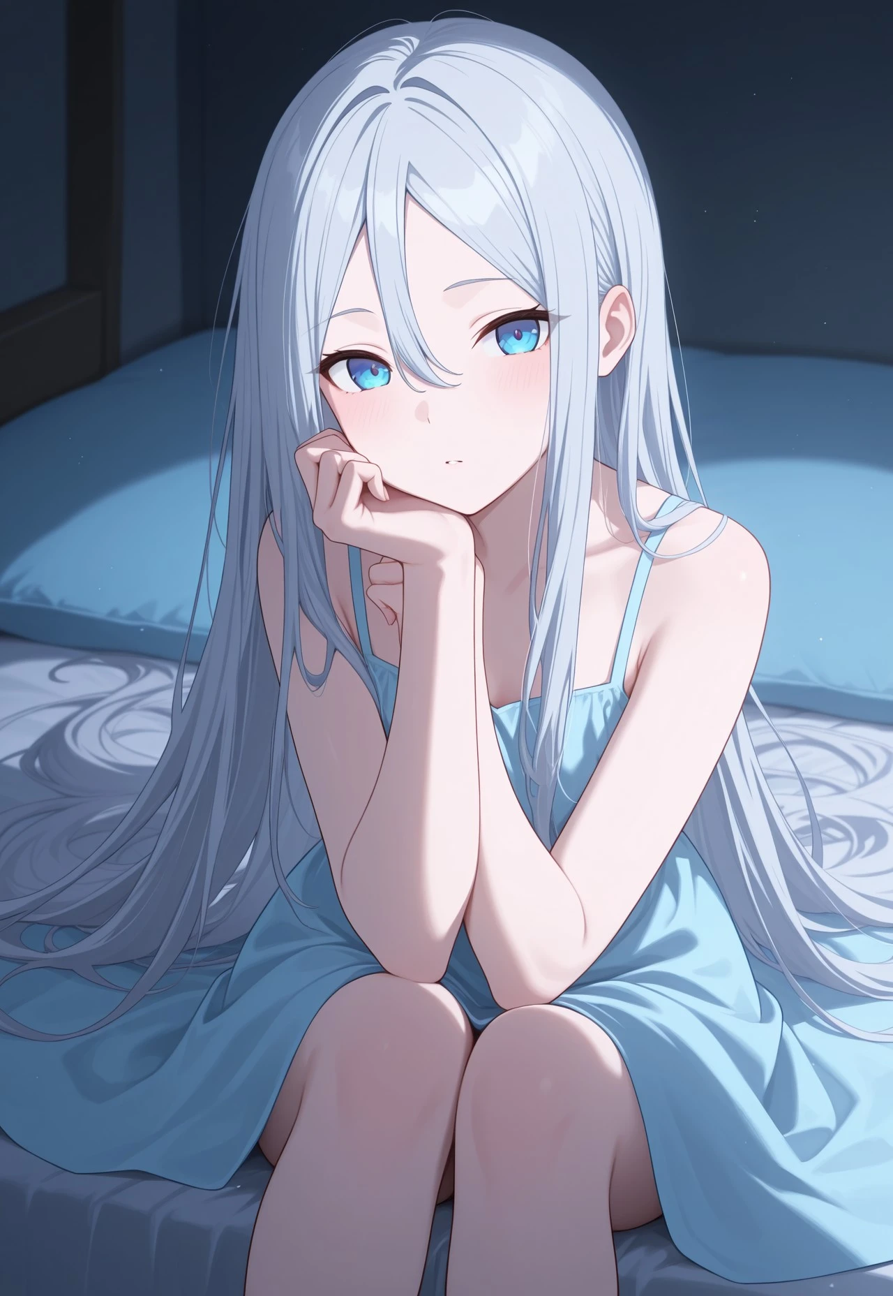 kndyisk, long hair, grey hair, blue eyes, very long hair, hair between eyes