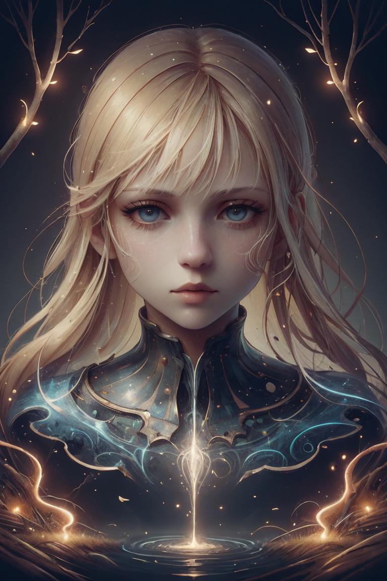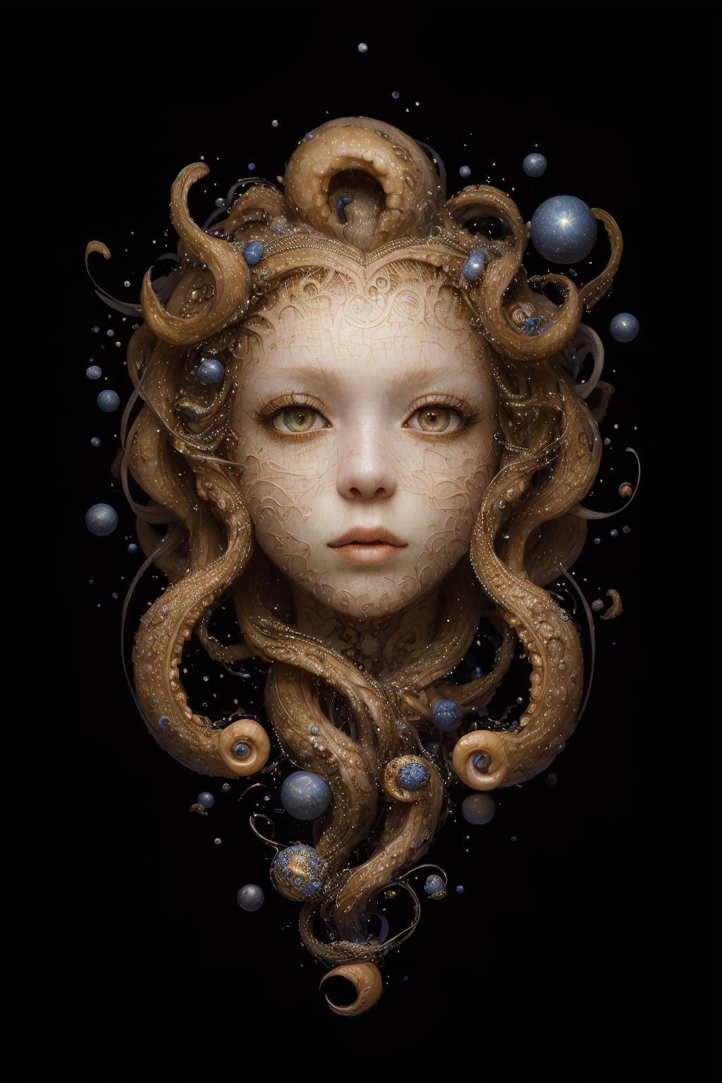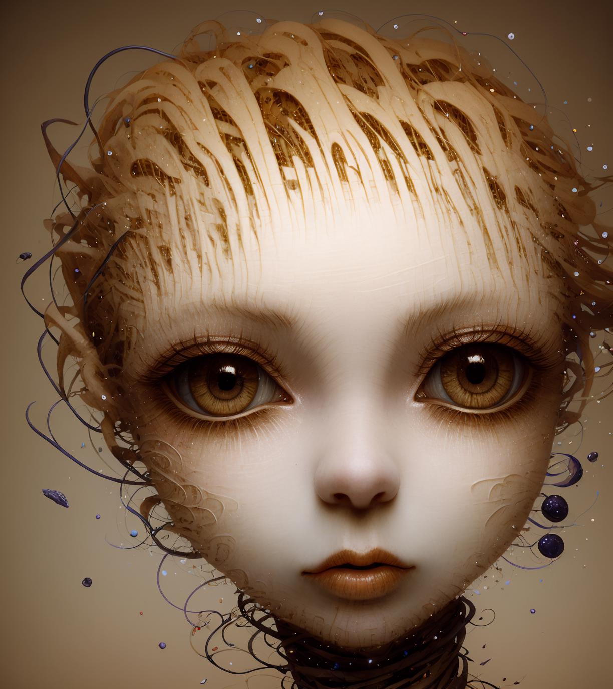 LoRA for SD1.5 trained with CivitAI on 120 (60 originals + 60 mirrored) 680x680 surrealistic mostly female (sometimes doll, android, unisex) portraits in style of Naoto Hattori with manually fixed BLIP2 captions.