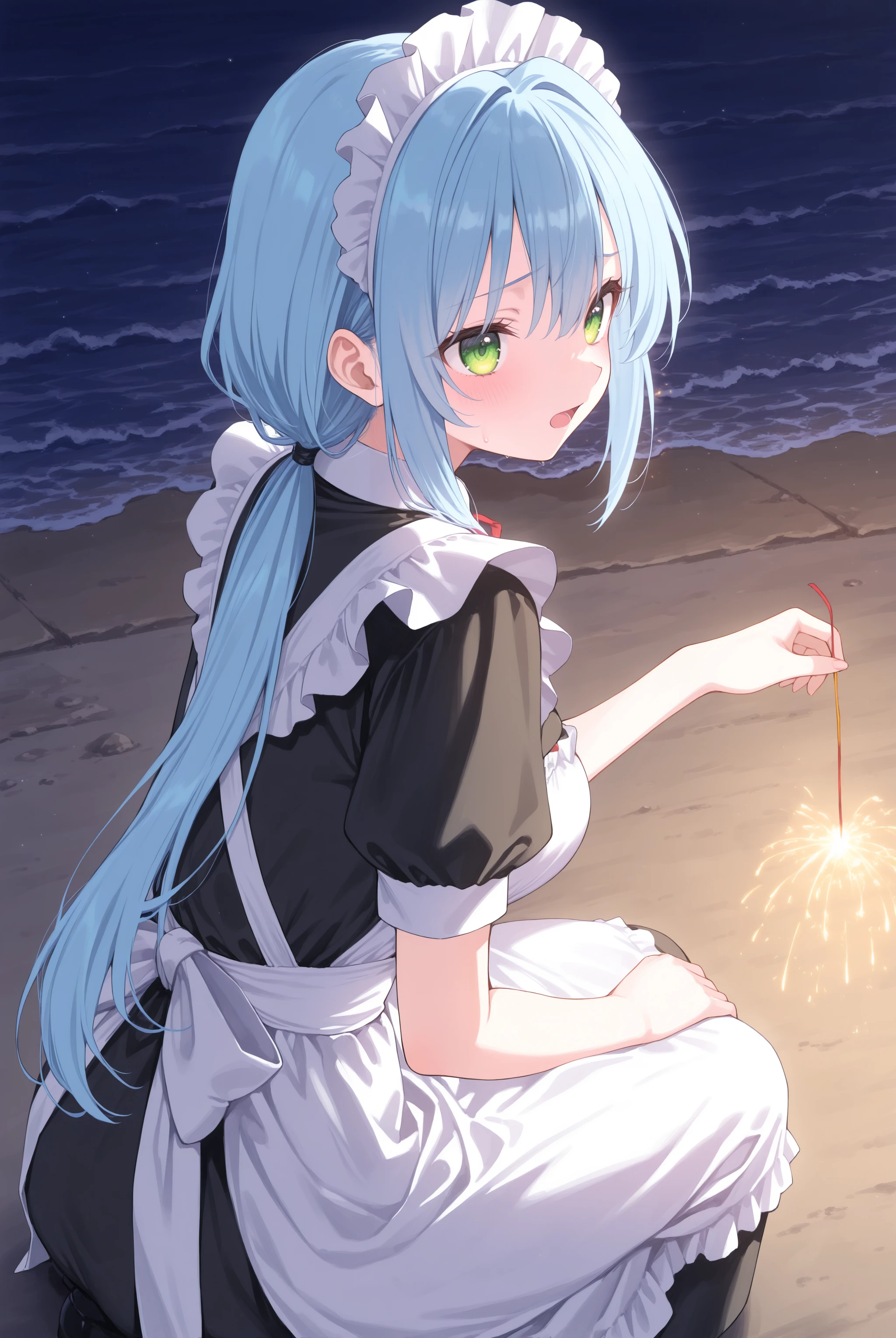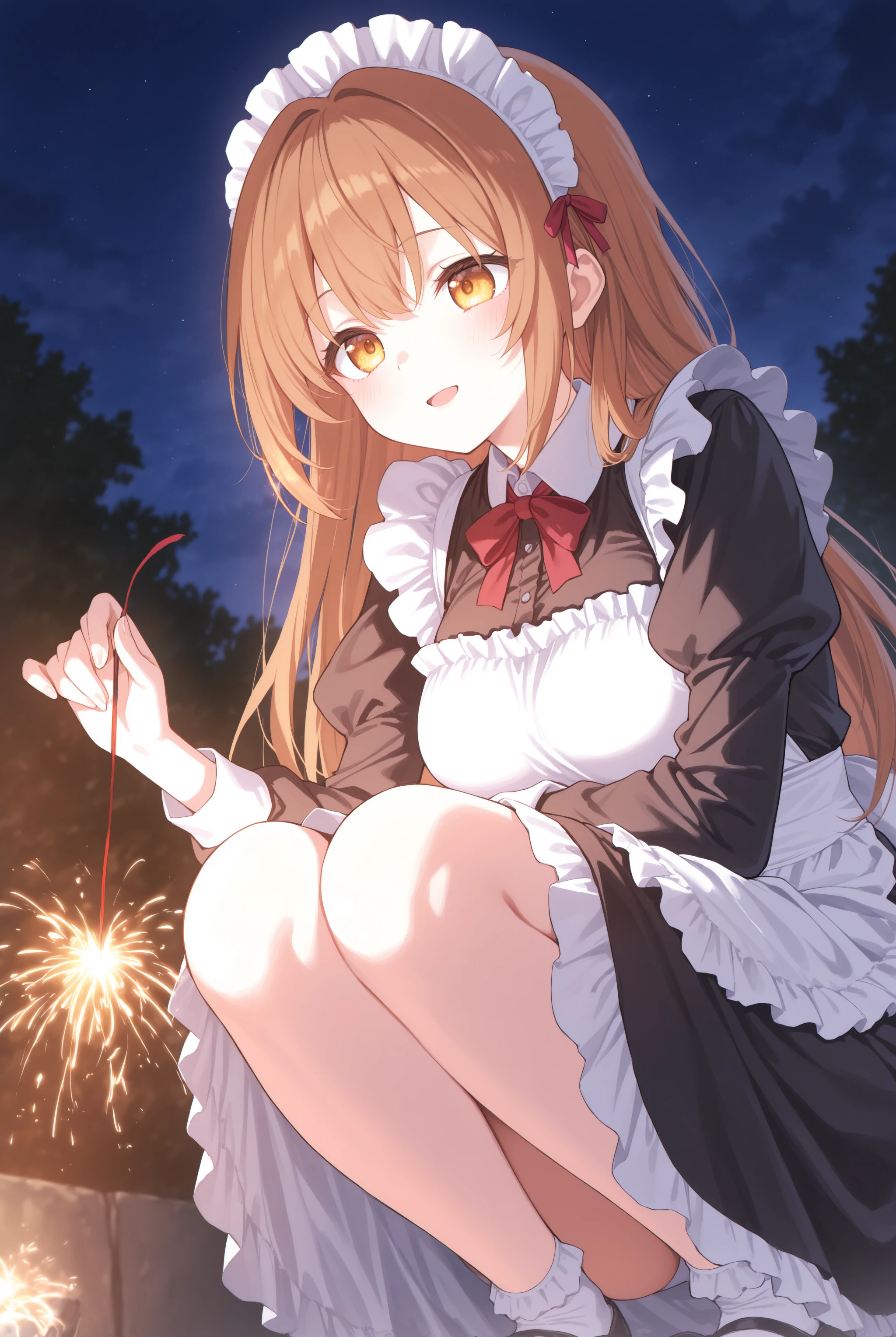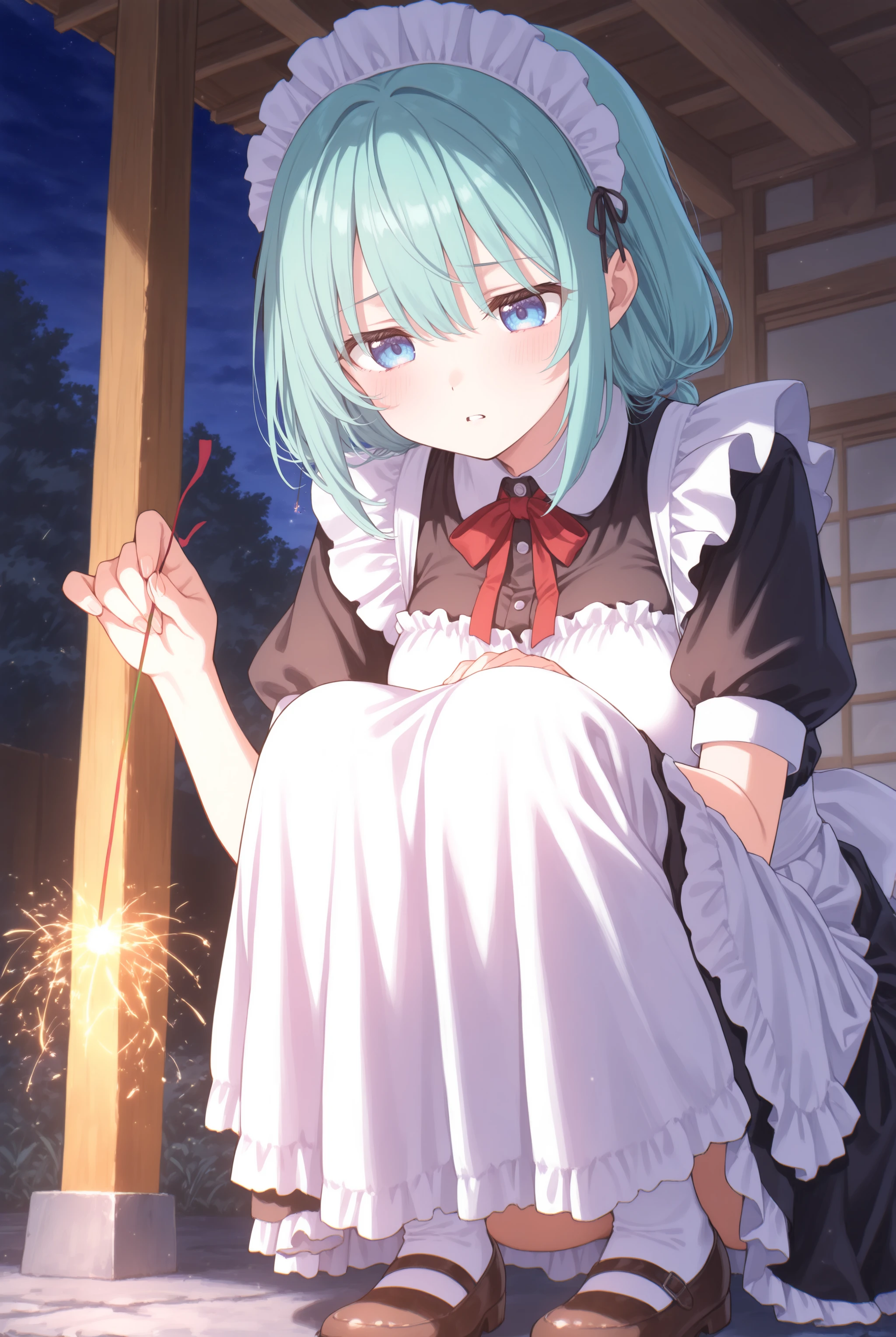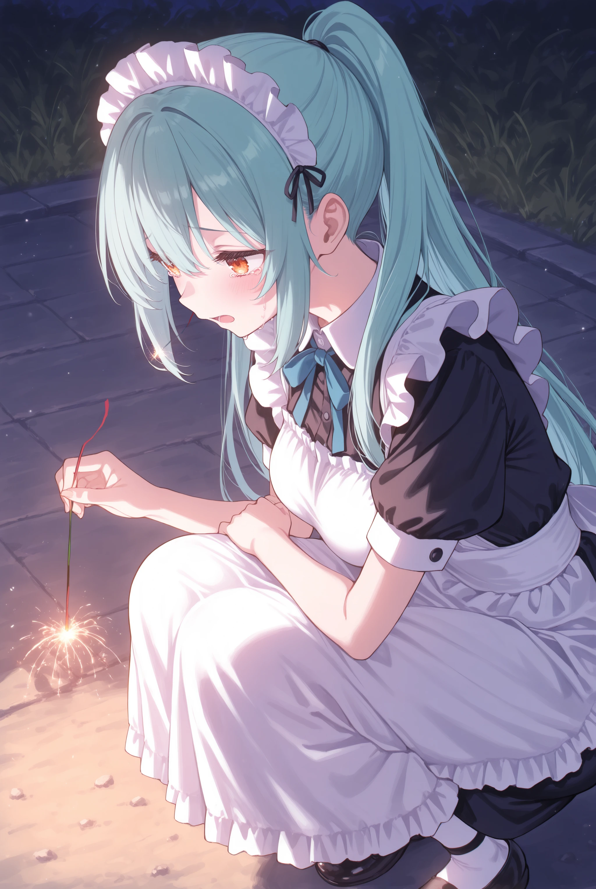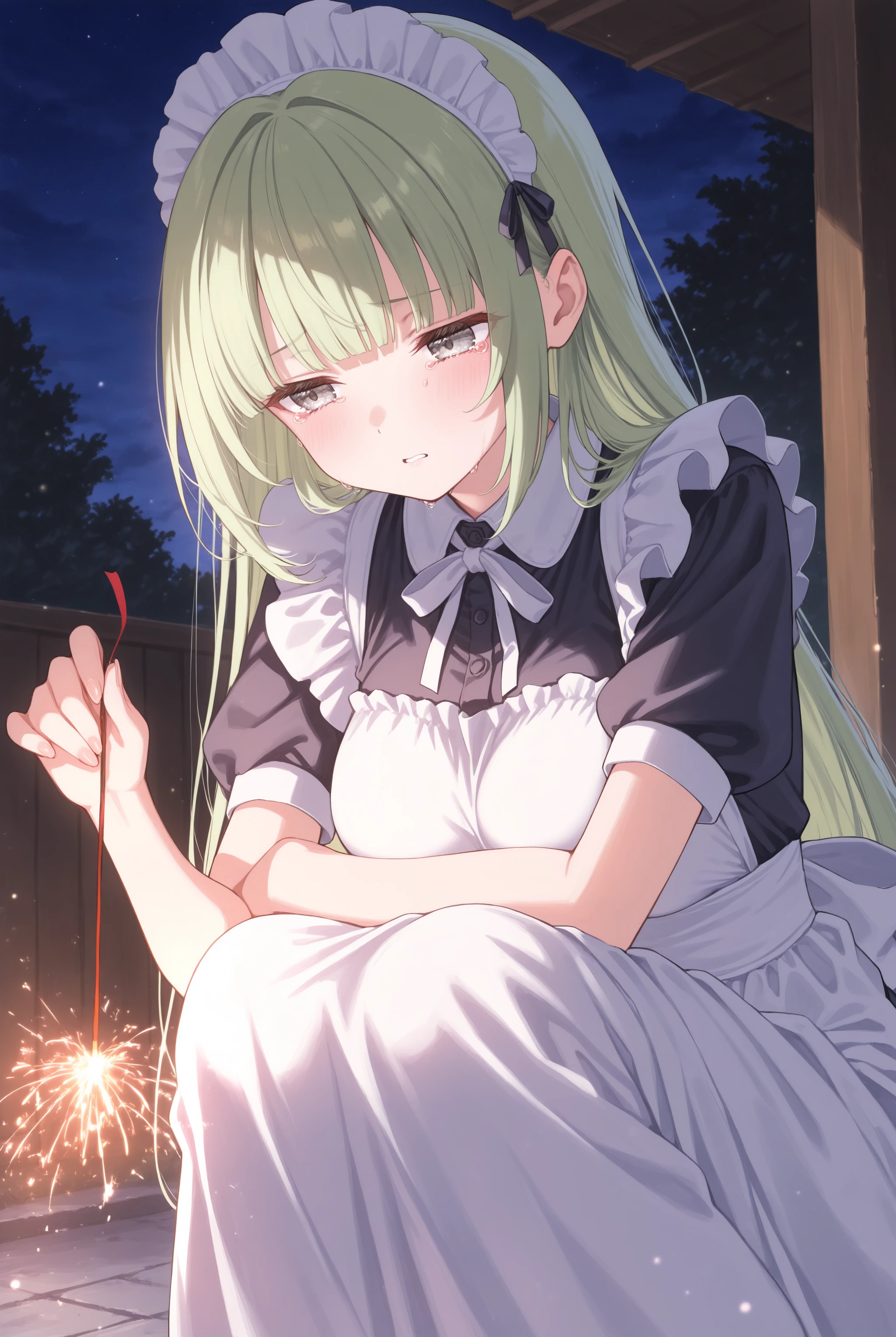元から学習している概念ではありますがどう見ても線香花火ではなく手持ち花火の持ち方や形状なのを矯正します。トリガーだけでも機能しますので fireworks,sparkler,holding fireworks,squatting,night,outdoors 辺りはお好みで必要なものを入れて下さい。