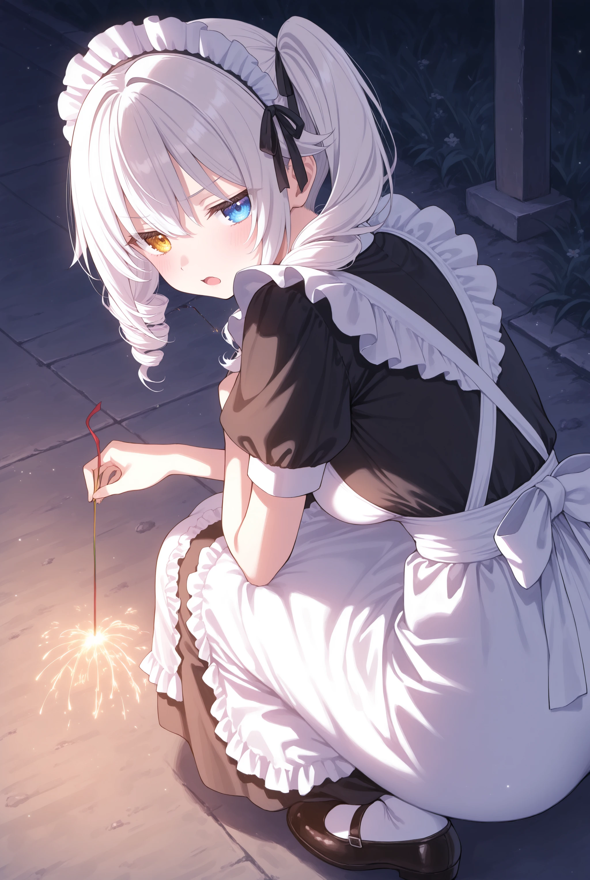 While it's a concept originally learned, it corrects the holding posture and shape to match senkou hanabi, as the original model clearly depicted handheld fireworks instead. It functions with just the trigger word, so feel free to add terms like fireworks, sparkler, holding fireworks, squatting, night, outdoors as needed.