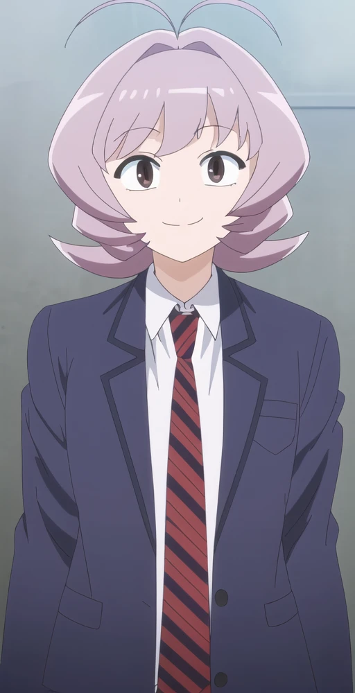 Main outfit, "blazer, striped necktie, striped skirt, stockings,"