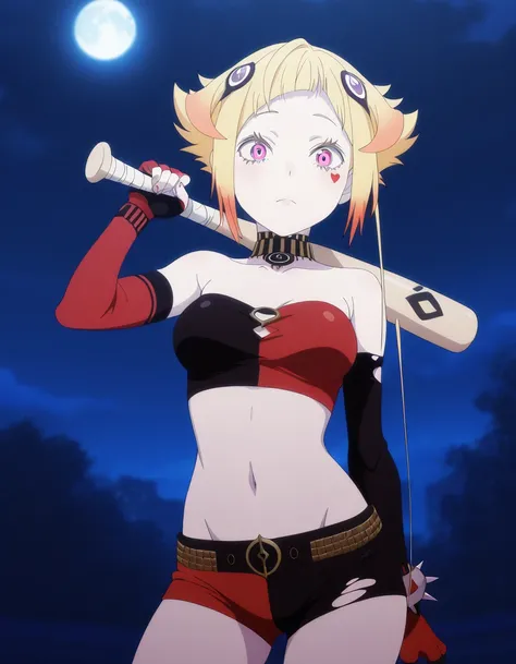capella emerada lugunica, short hair, blonde hair, hair ornament, pink eyes, multicolored hair, gradient hair, mature female, medium breasts, anime screencap,