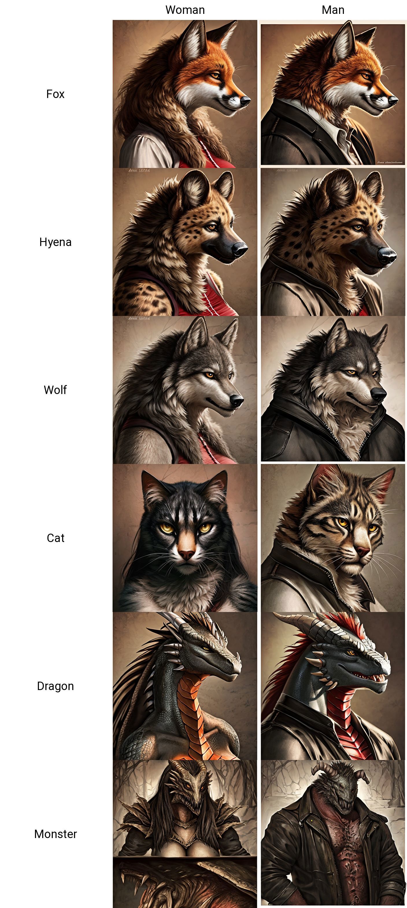 and as you see i tried with several common species and a wildcard word like "monster" that can be widely interpreted by the model and normally give unstable results.