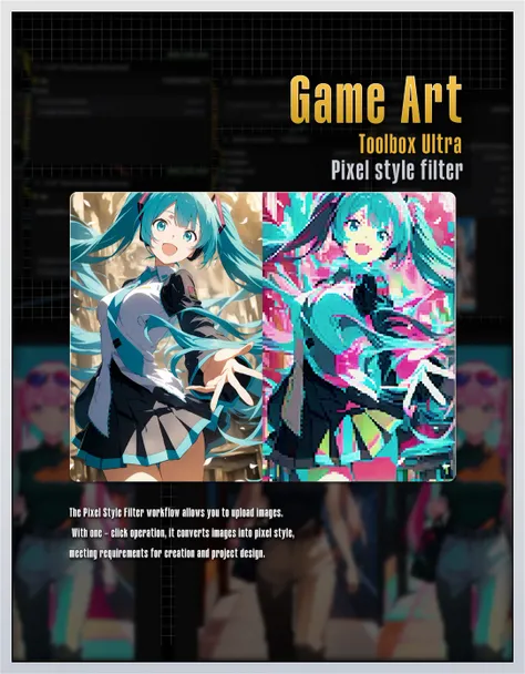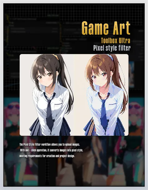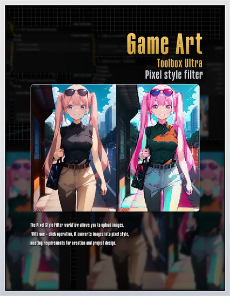 The Pixel Style Filter workflow allows you to upload images. With one - click operation, it converts images into pixel style, meeting requirements for creation and project design.