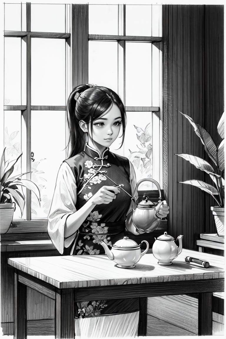 Generates everything from rough pencil sketches to finely detailed drawings. Very flexible-- it can do monochrome (black graphite) or colored pencil, any subject you give it.