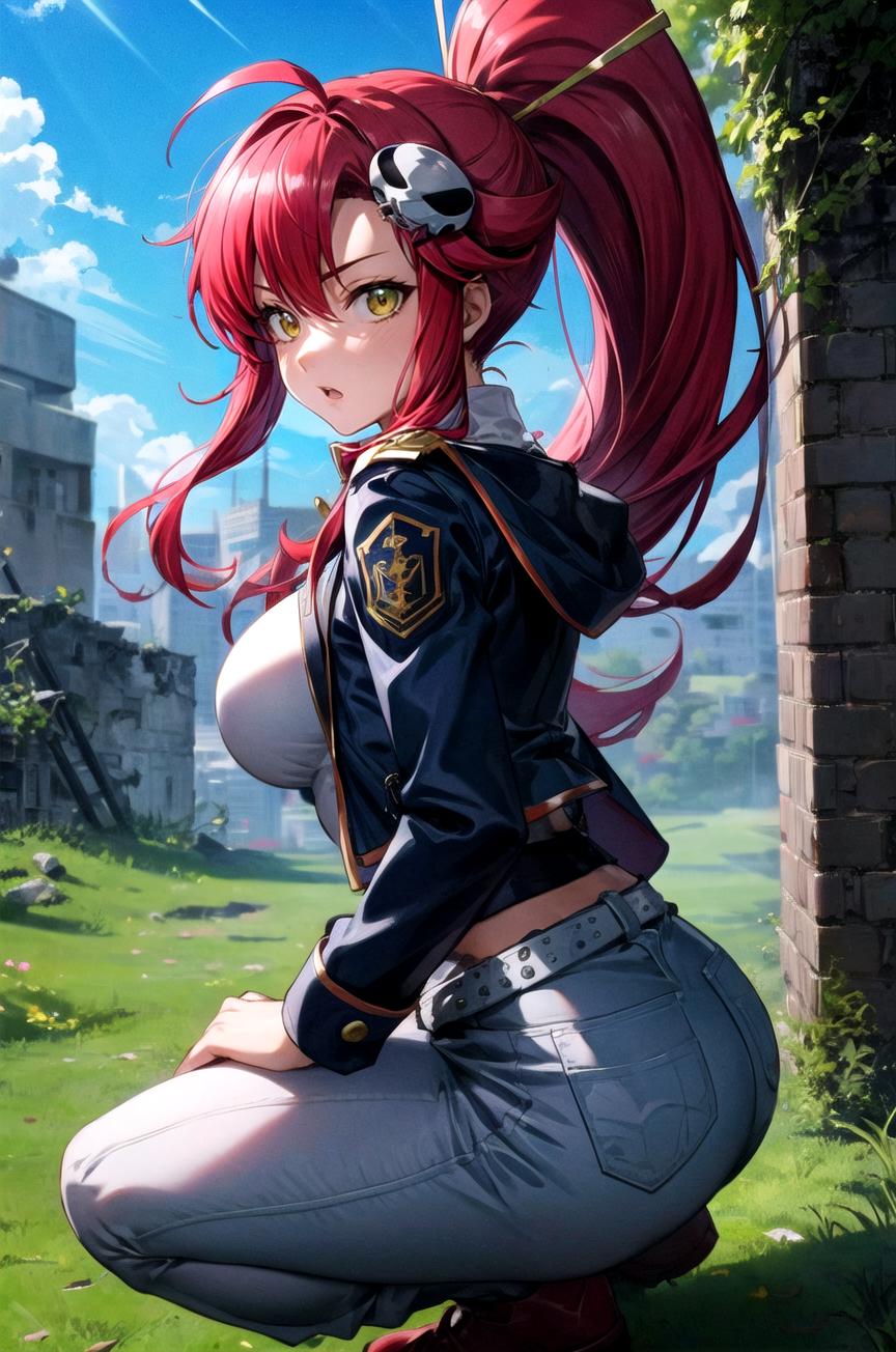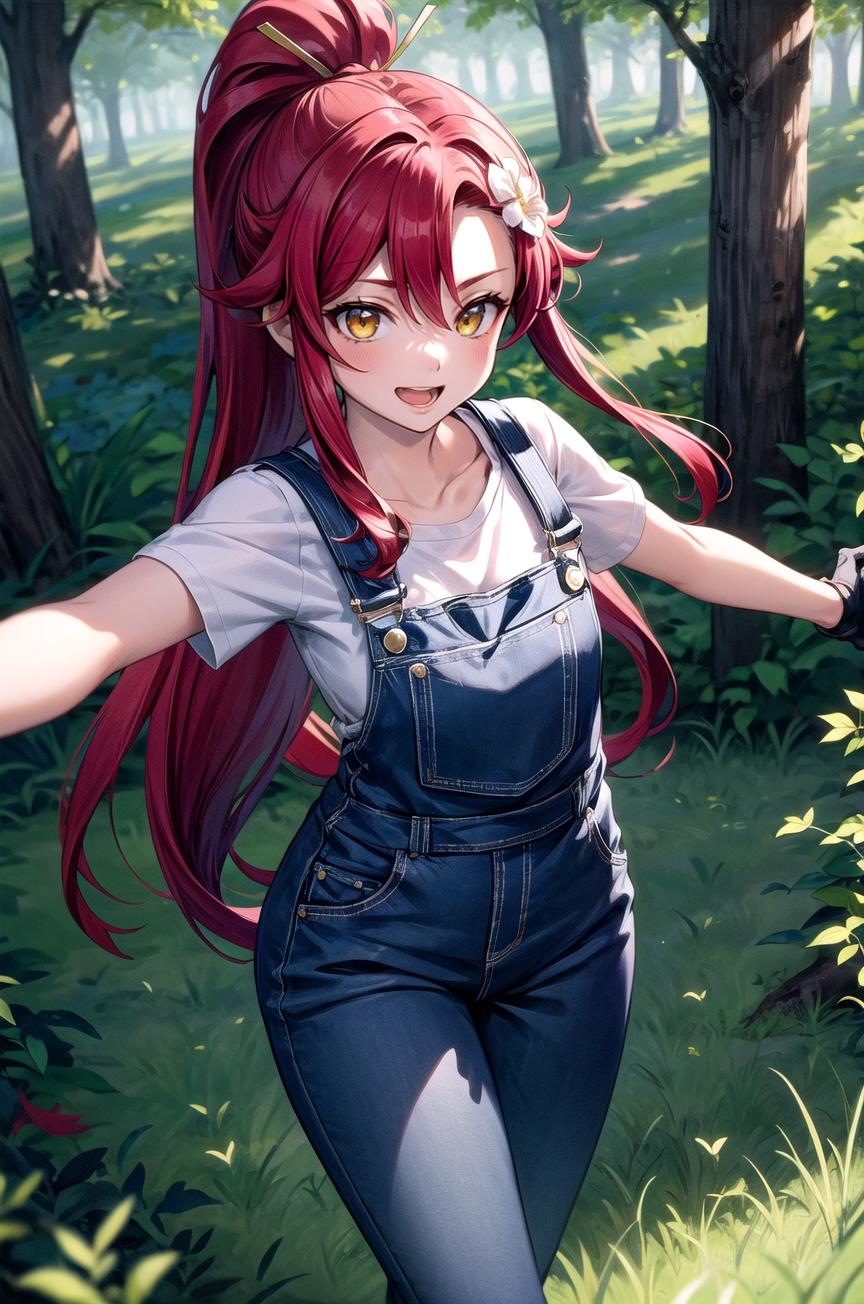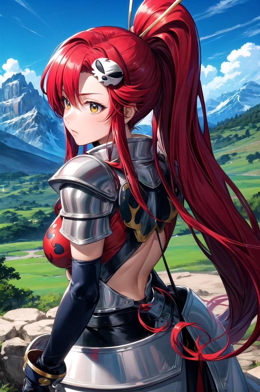 You can also add these for the checkpoint to understand what you are looking for better: bikini, short_shorts, red_hair, yellow_eyes, flame_print, (or anything else that describes the char, but this should be more than enough).