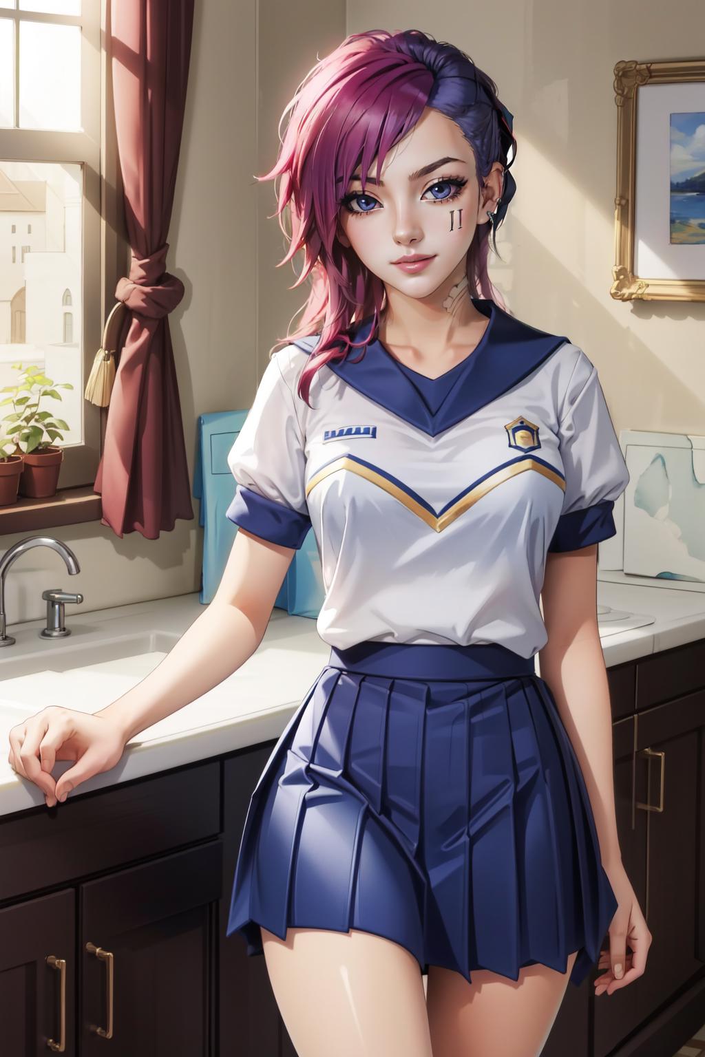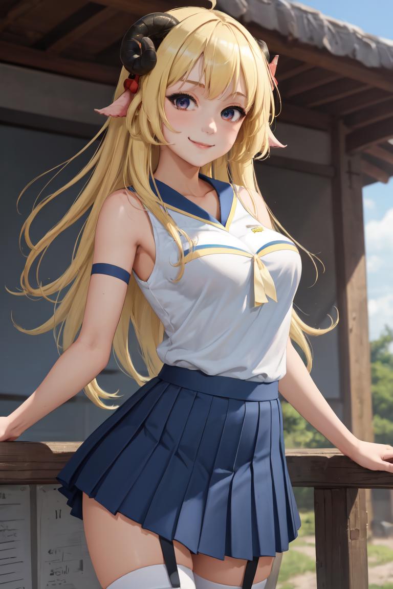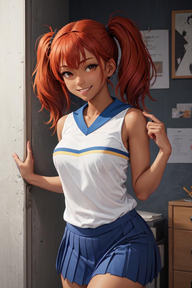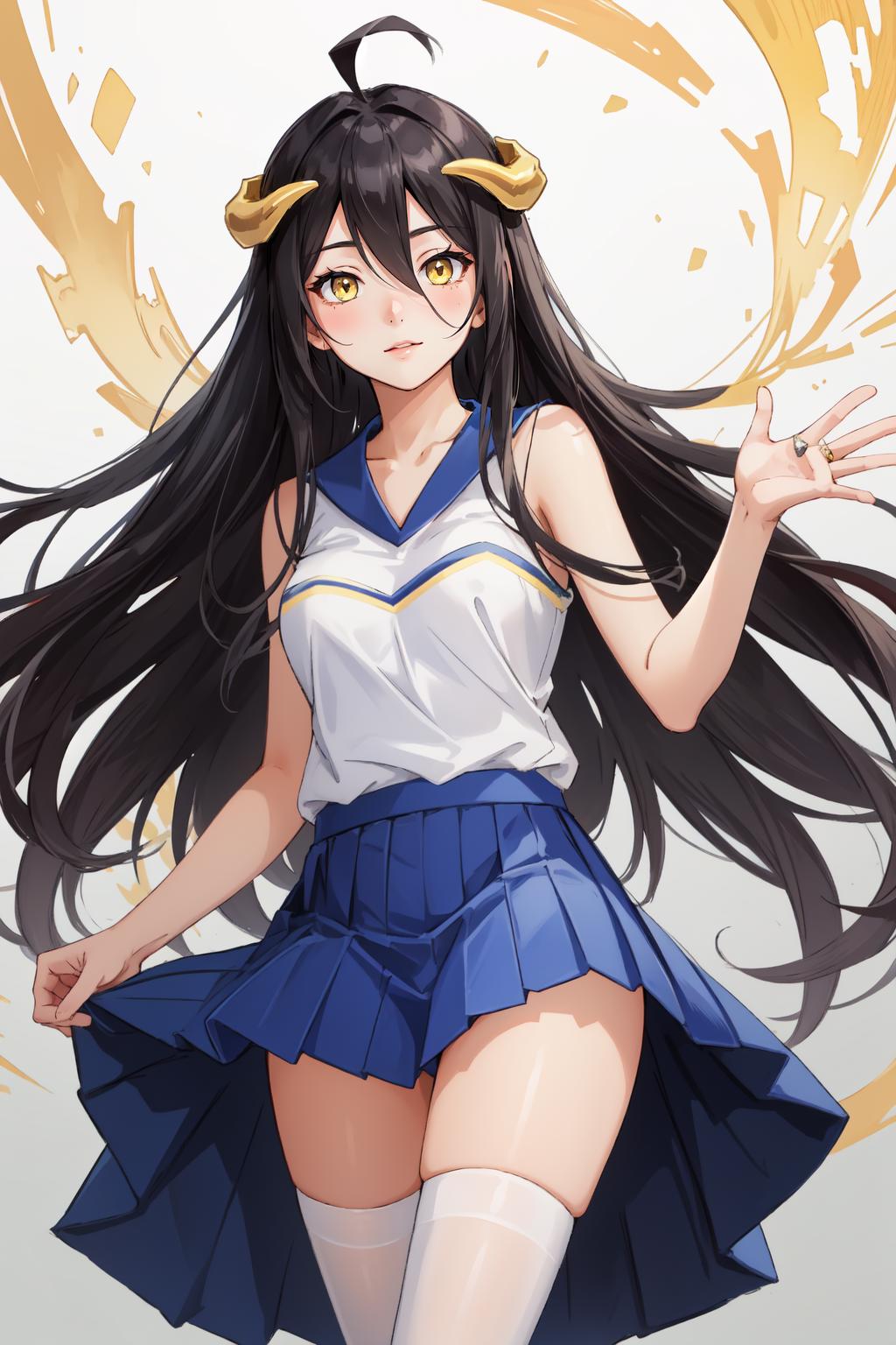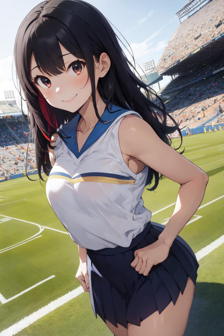 The main prompt is "HaruCheerUniform, blue skirt".
