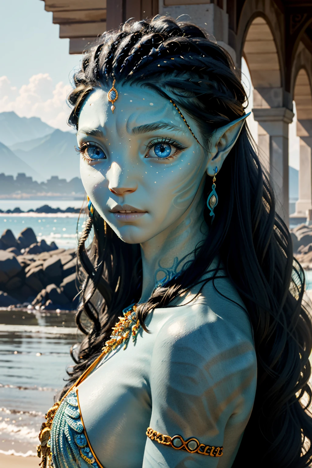 AvTsireya, 1girl, blue skin, blue eyes, long hair
