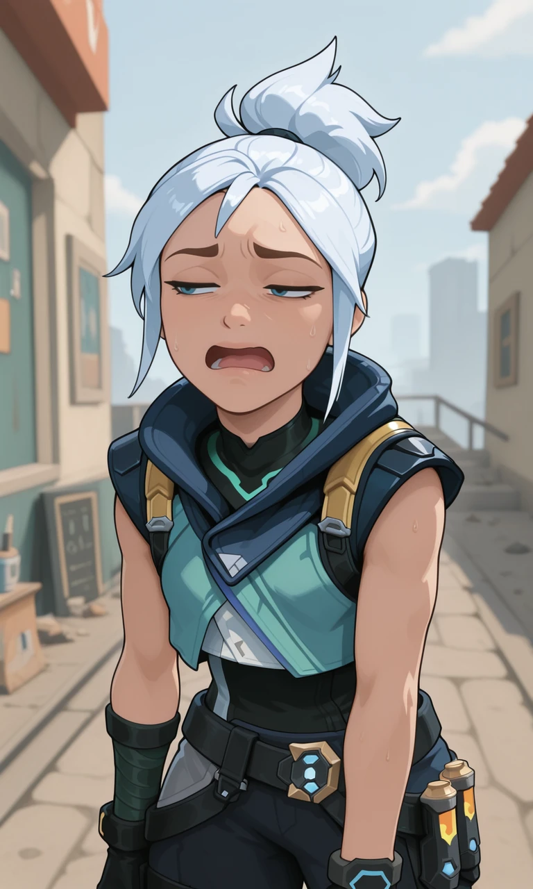 cringe, half-closed eyes, open mouth