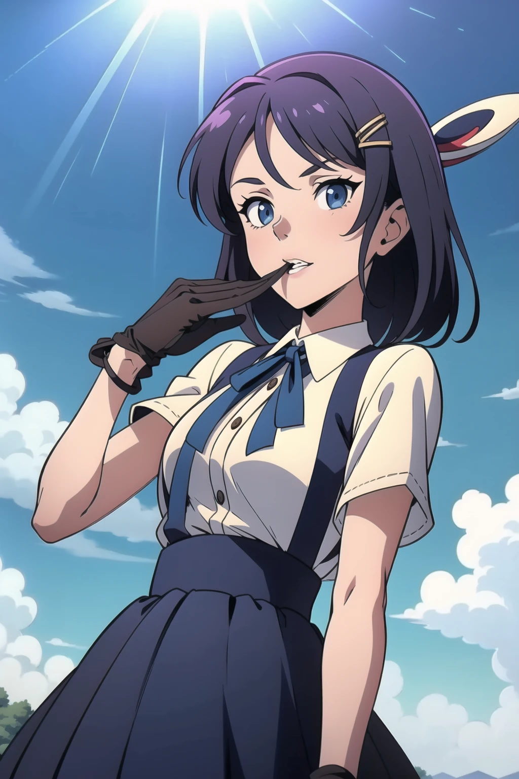 <lora:Glovebiting-02:1>, gloves, glove biting, Biting glove finger, biting the finger of his glove
