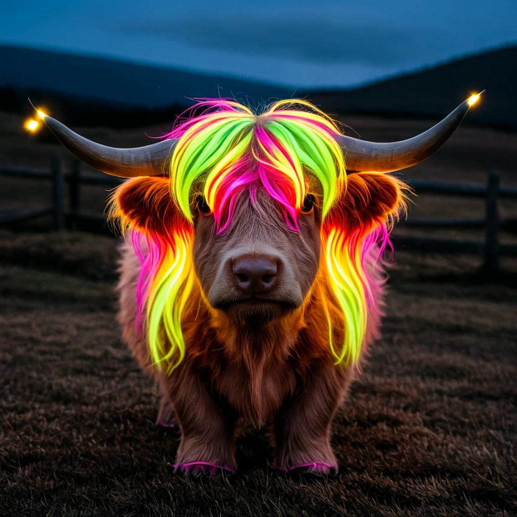 hrglw, glowing __color__ hairto make hair glow, can make a lot more things glow too, creates 'energy sparks' sometimes, has a tendancy to produce people rather than animals.