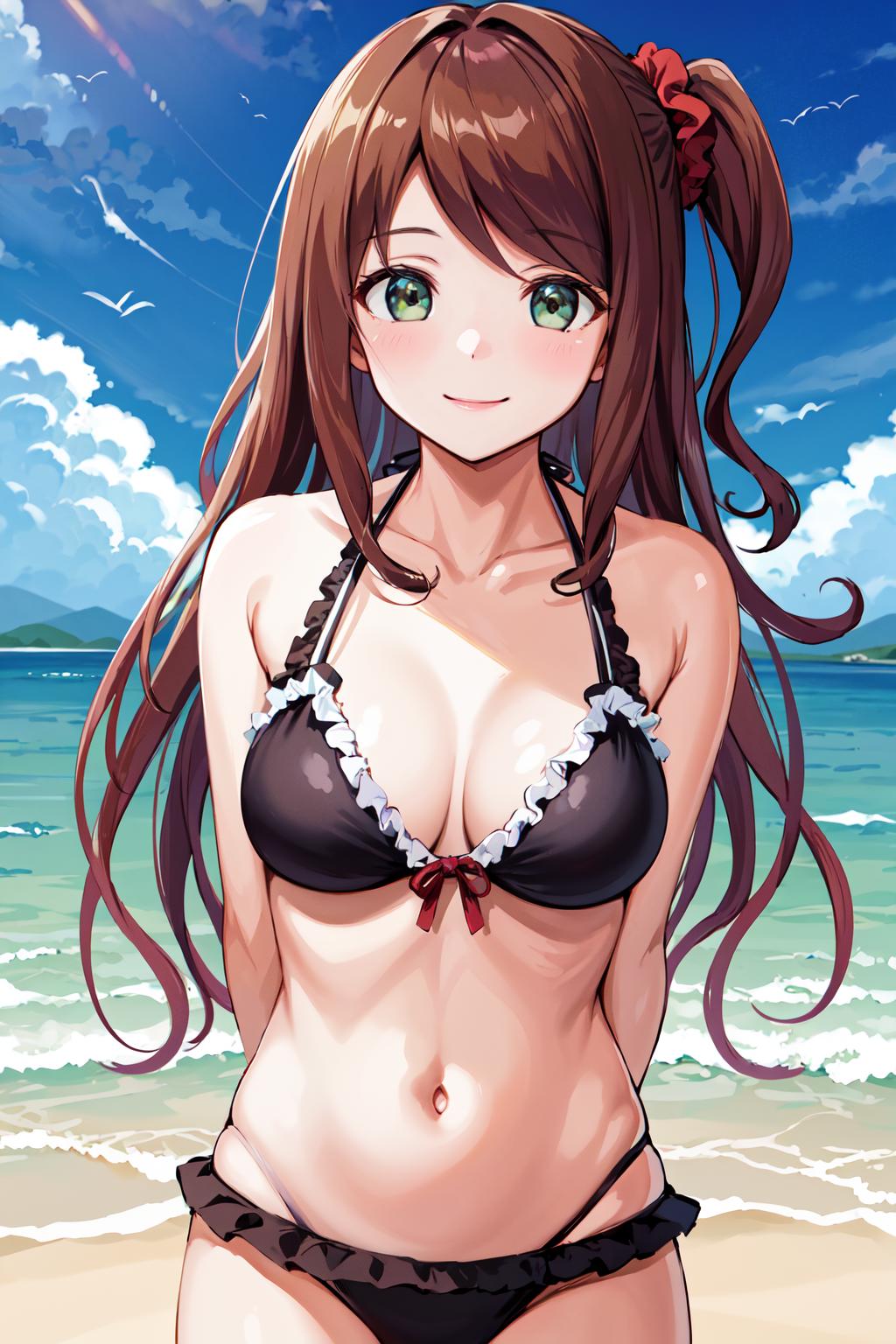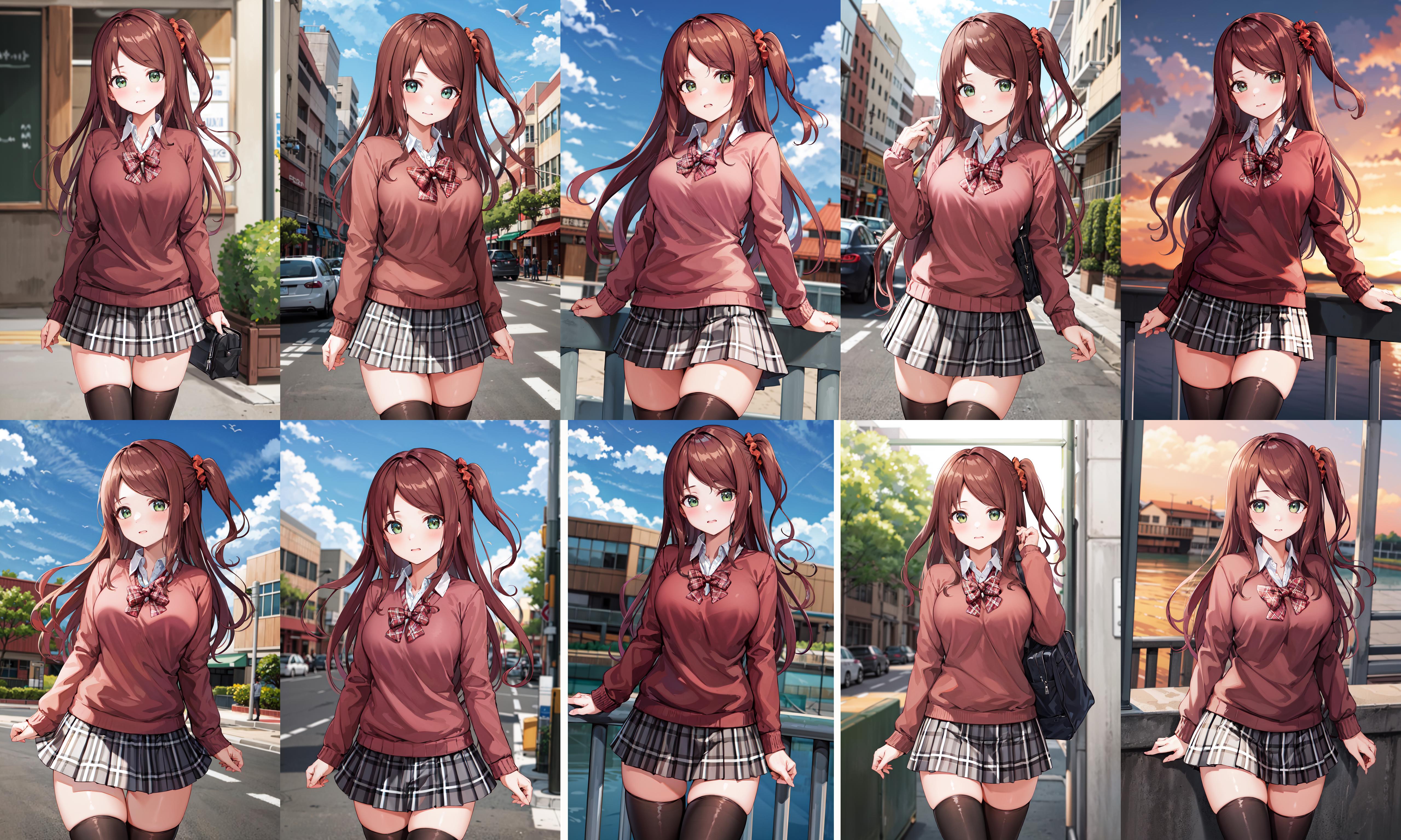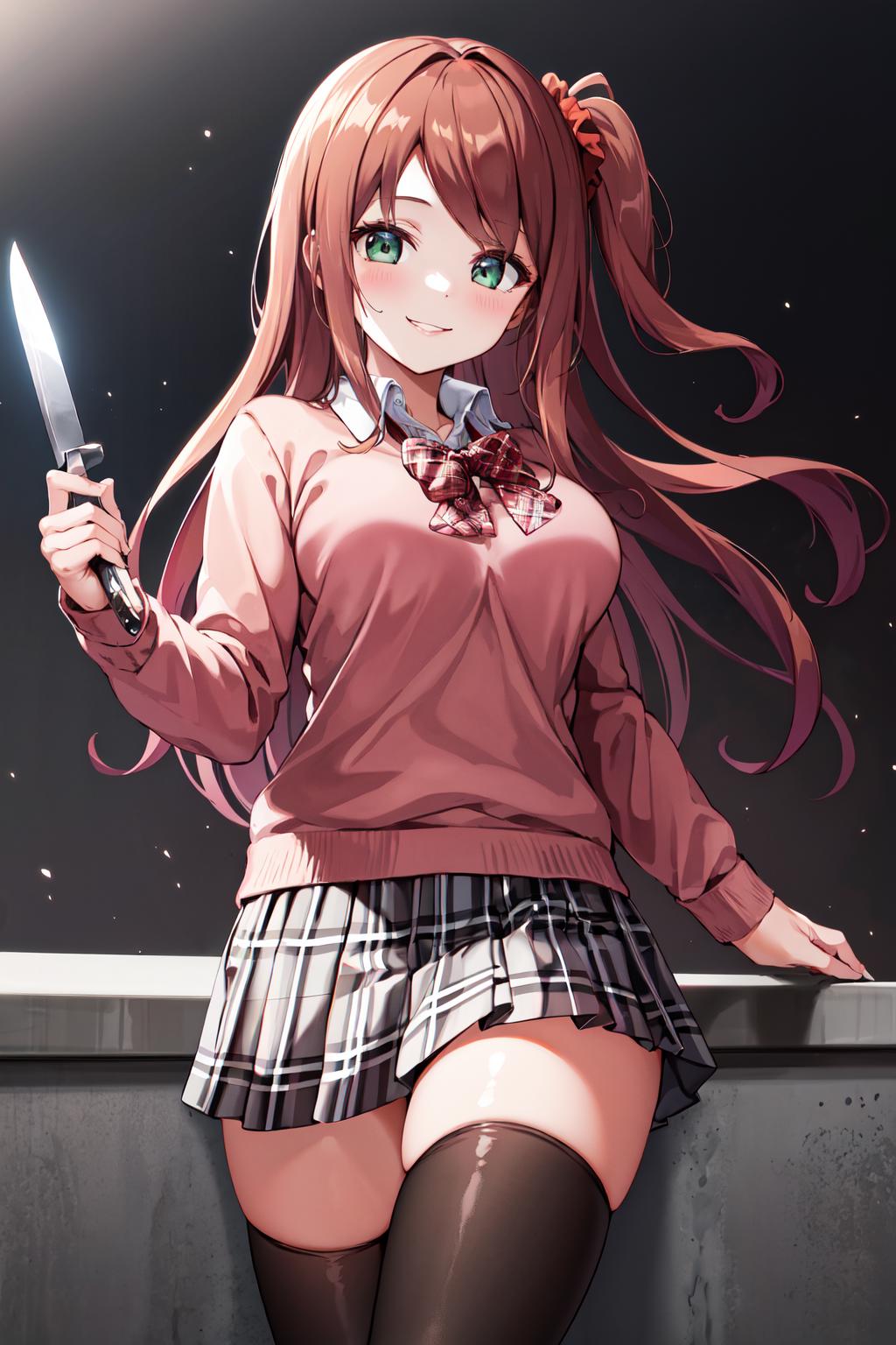 hmyouko, black thighhighs, pleated skirt, plaid skirt, school uniform, one side up, bowtie, sweater, white shirt, hair scrunchie, miniskirt