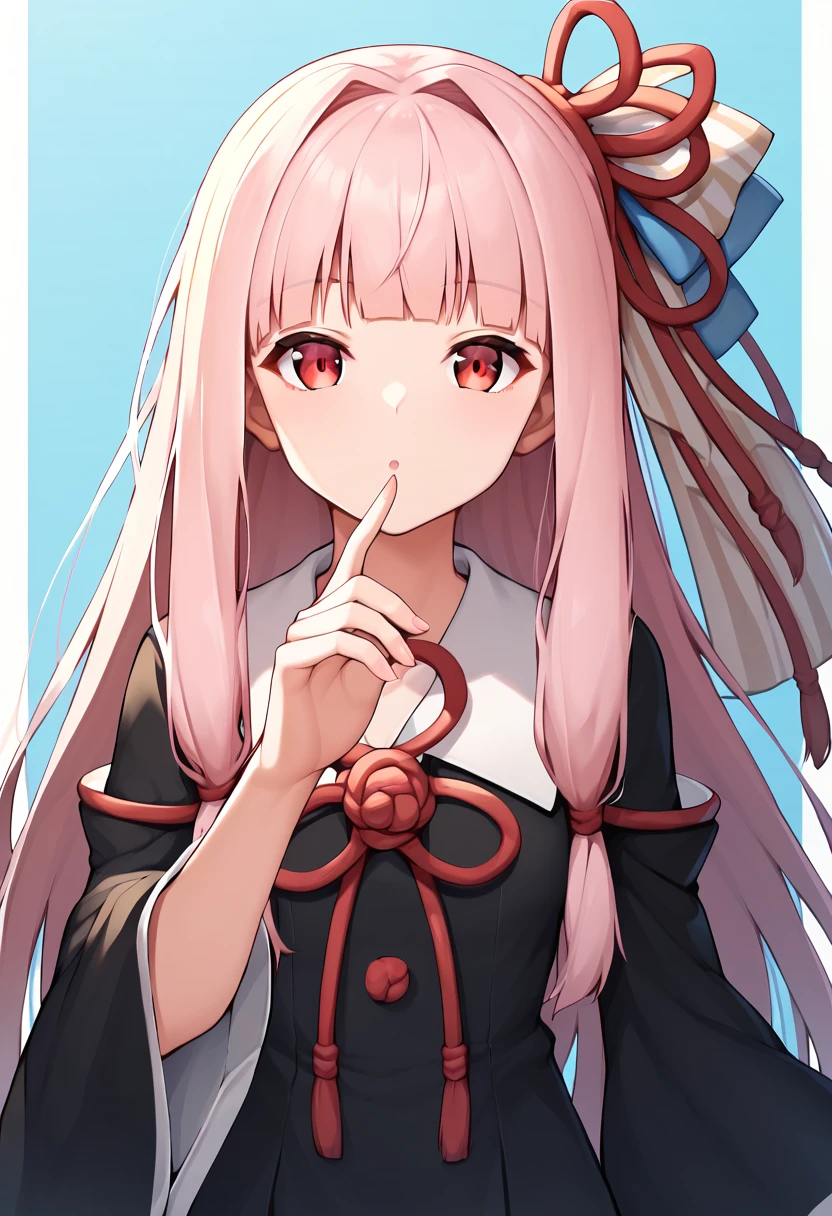kotonoha akane, long hair, pink hair, ribbon, red eyes, blunt bangs, sidelocks,