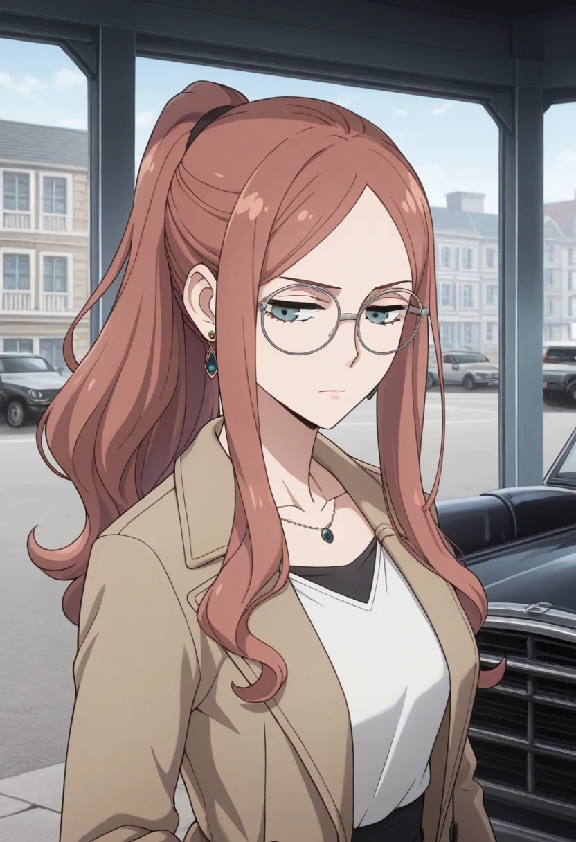 For version 1.0: sylvia sherwood, long hair, reddish-brown hair, green eyes