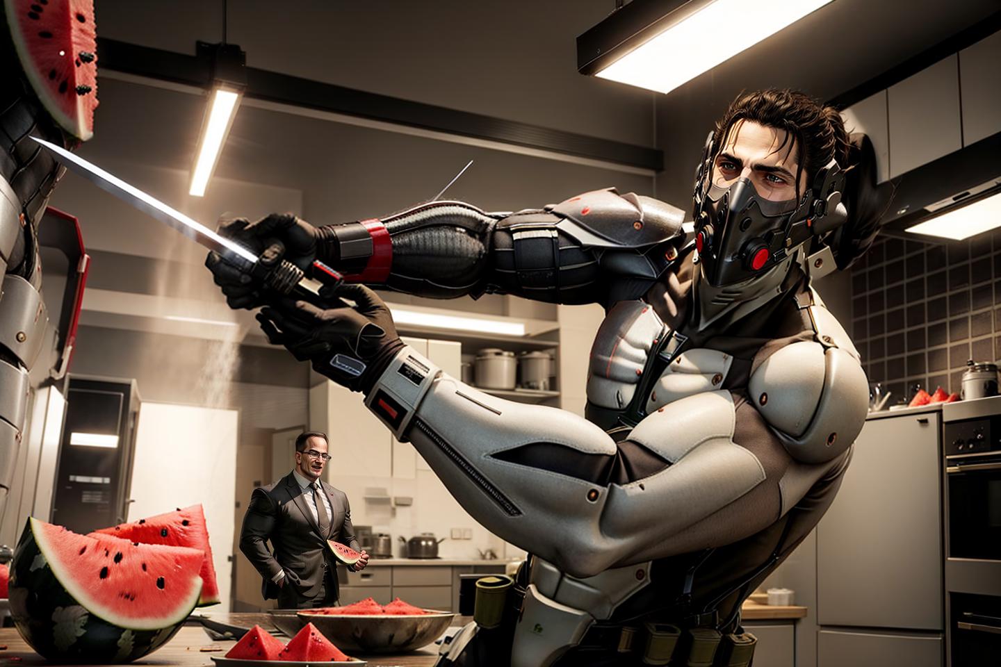 Really cool character, I'm glad with the results considering the lack of fanart and base images. I ?????? up with the training and it's recommended to always pair the trigger word with "muscular male" to make him wider. I also tried to make his black spots with tag "nanomachines" but it's not possible, the AI doesn't understand it atm.