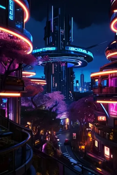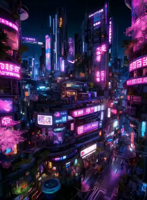 Đường chân trời đô thị với cây Sakura đang phát triển trên các tòa nhà và cánh hoa anh đào chảy trong gió, xuất ra hình ảnh và video đơn, không có âm thanh.