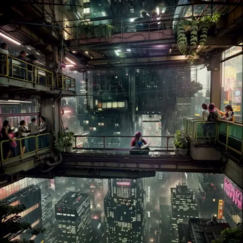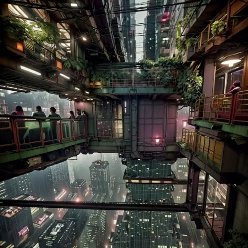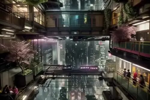 chế độ xem toàn cảnh của một thành phố đô thị tương lai cổ điển và suy tàn, trả về hình ảnh và video độ phân giải thấp.