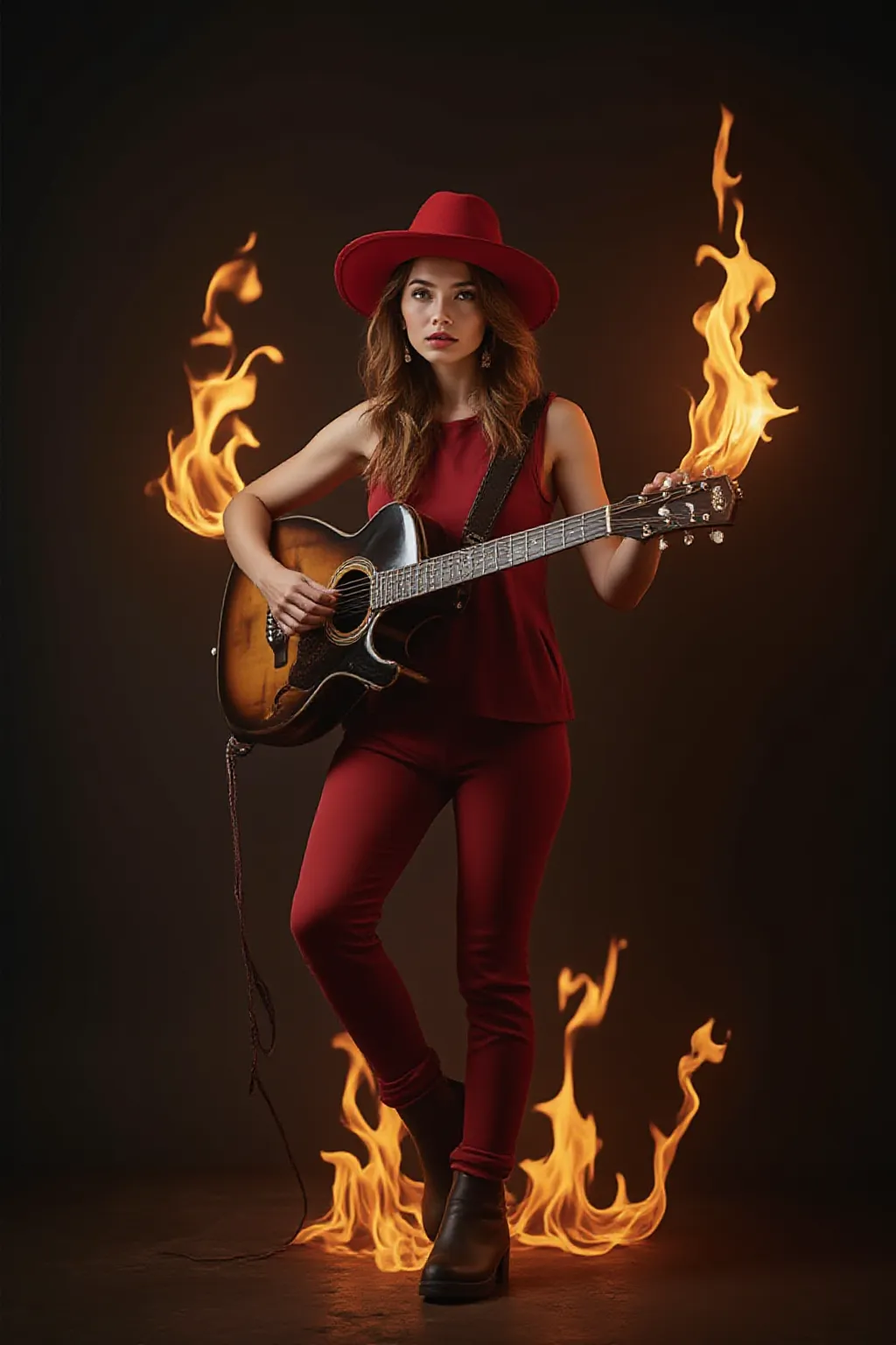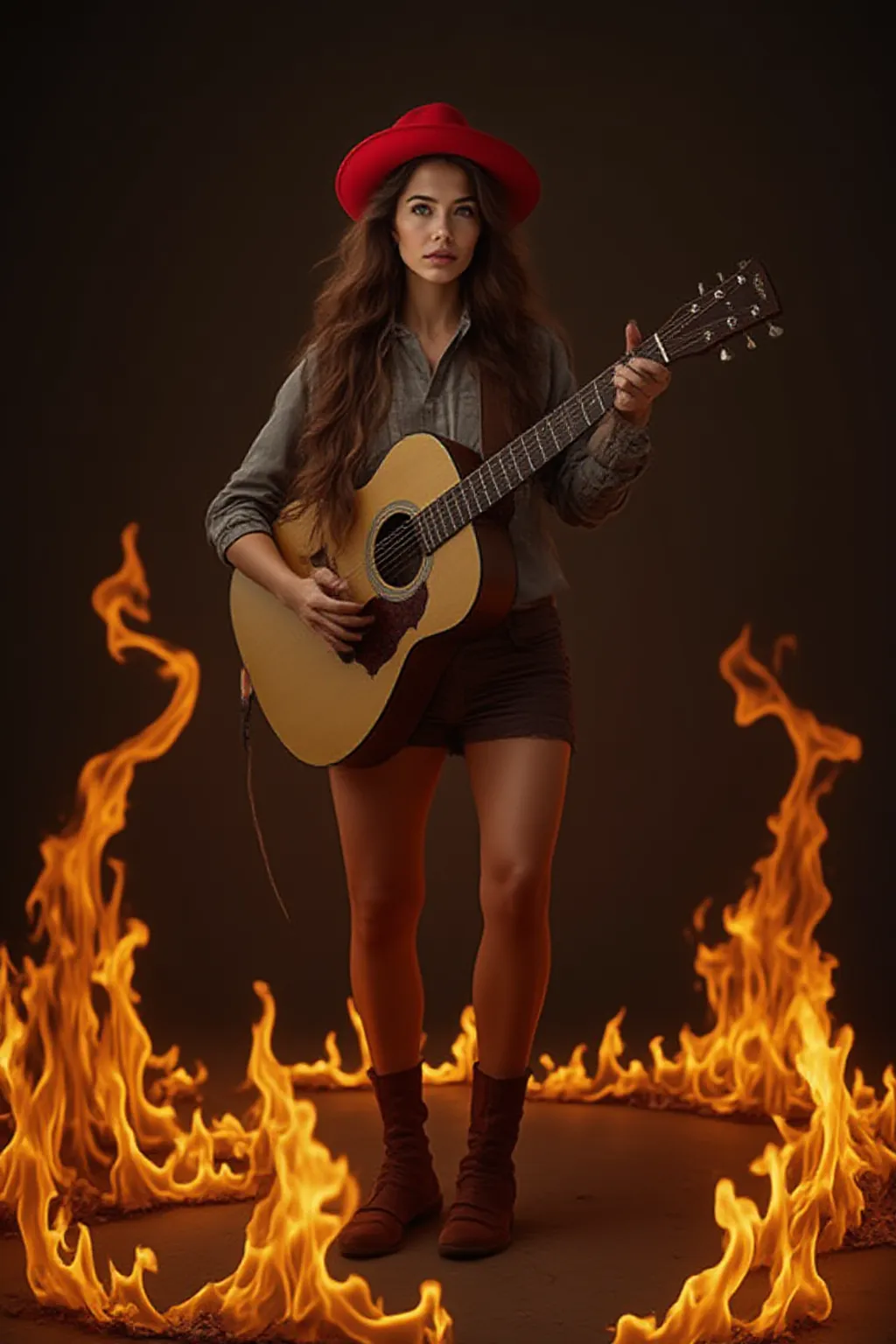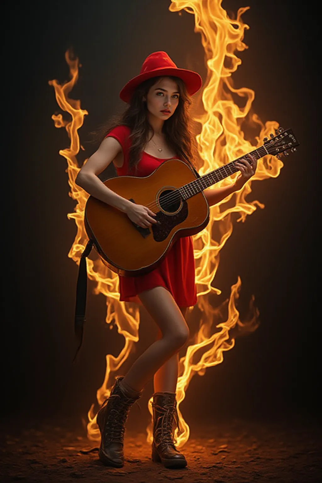 Cung cấp một bức ảnh,Có thể tạo ra chủ đề AI với phong cách tương tự như cô gái chơi guitar trong ngọn lửa