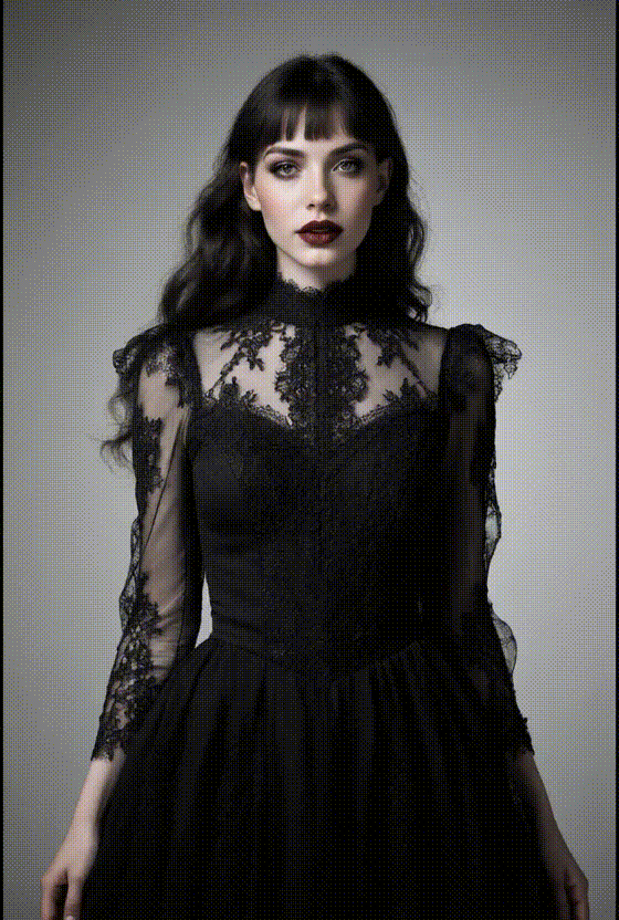 Video AI:Cô gái với thẩm mỹ tối tăm và ảm đạm của phong cách Gothic