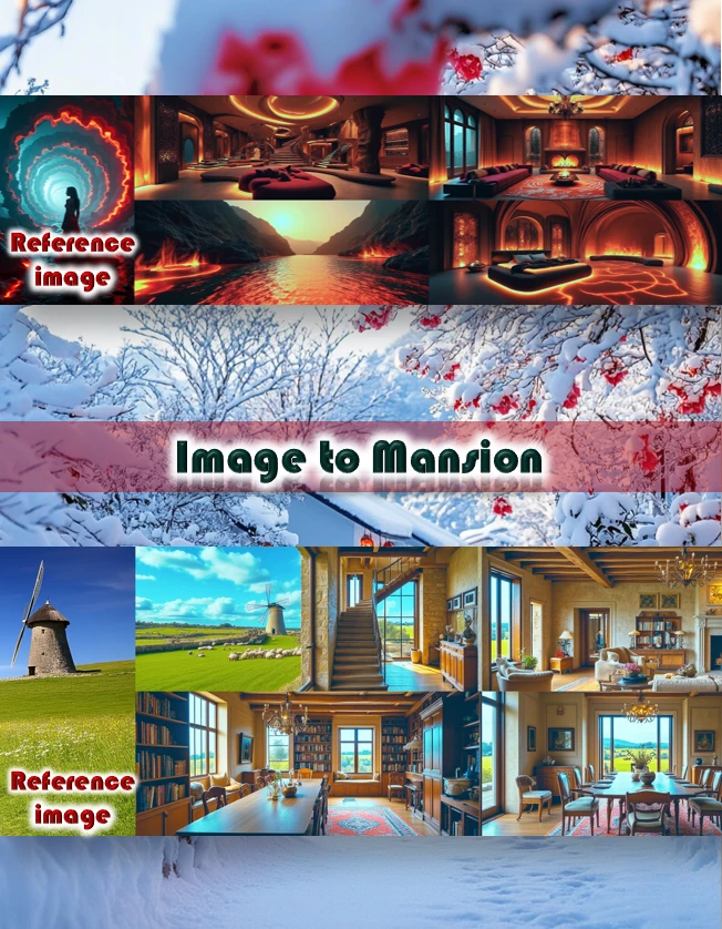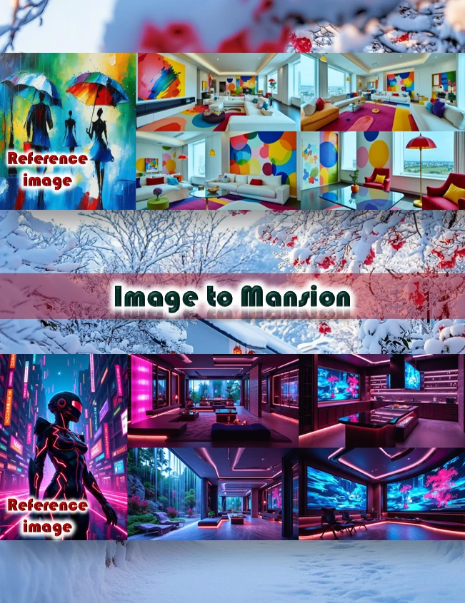 💡Input reference map,Choose aspect ratio and number of outputs,Automatically design and generate a set of realistic mansion interior photos