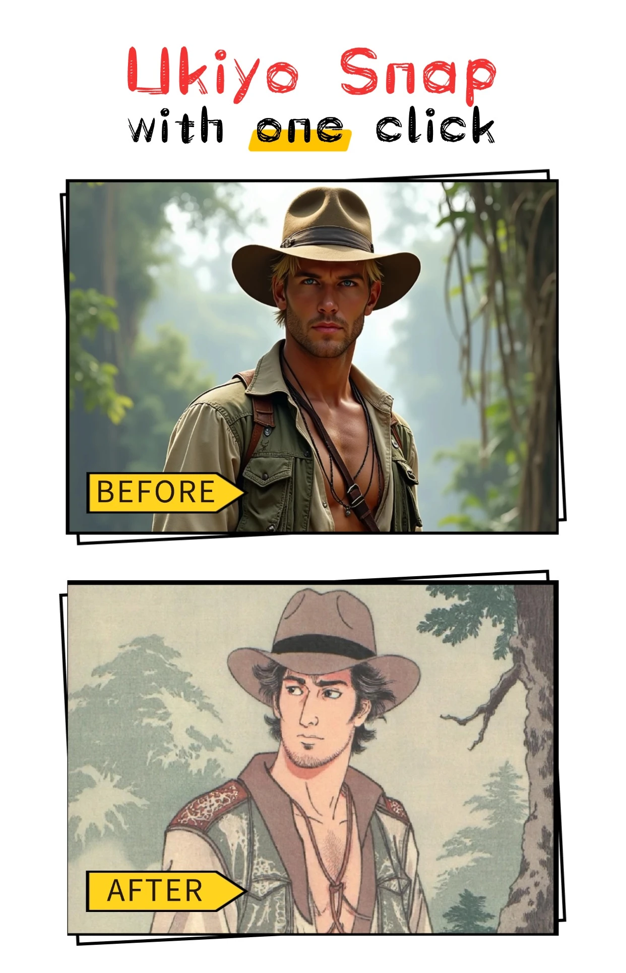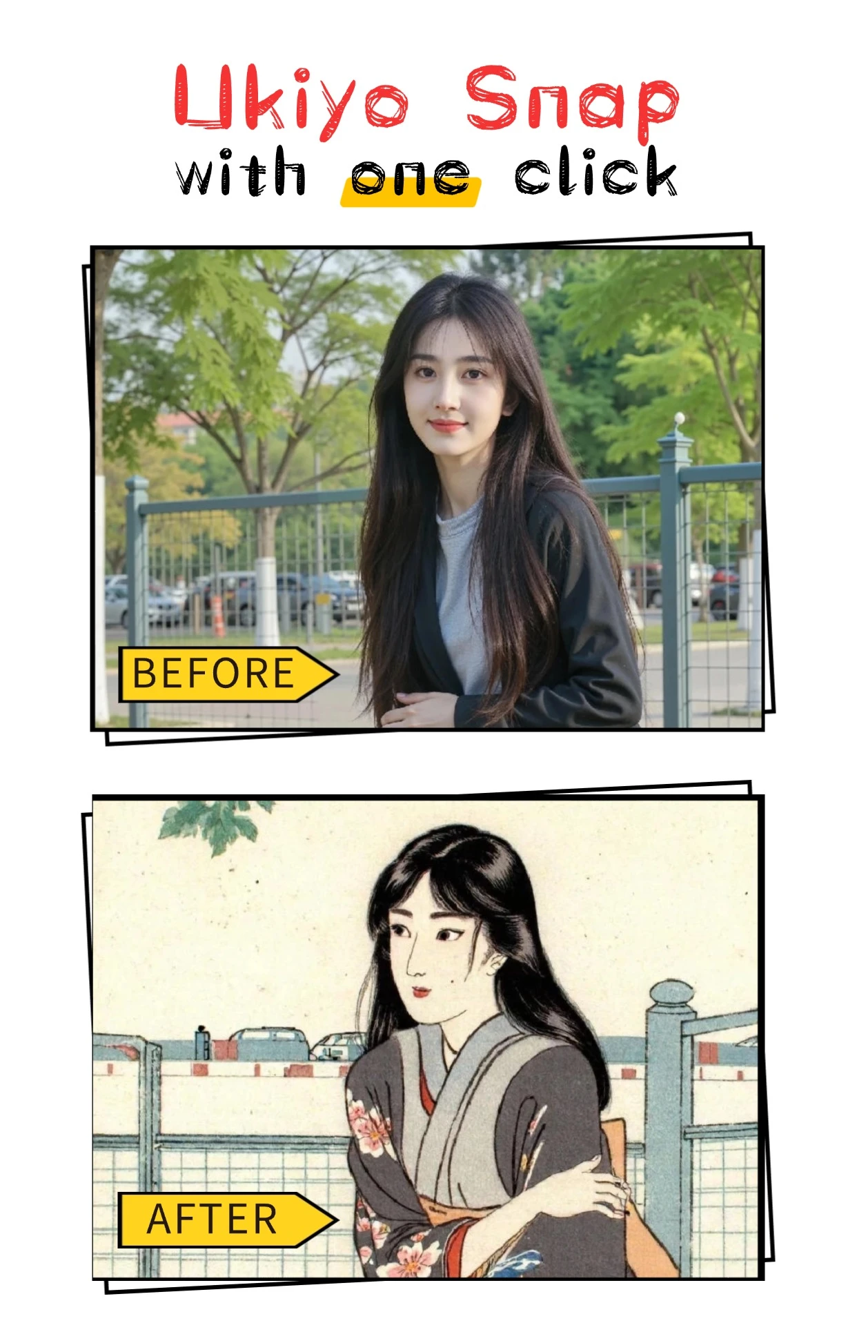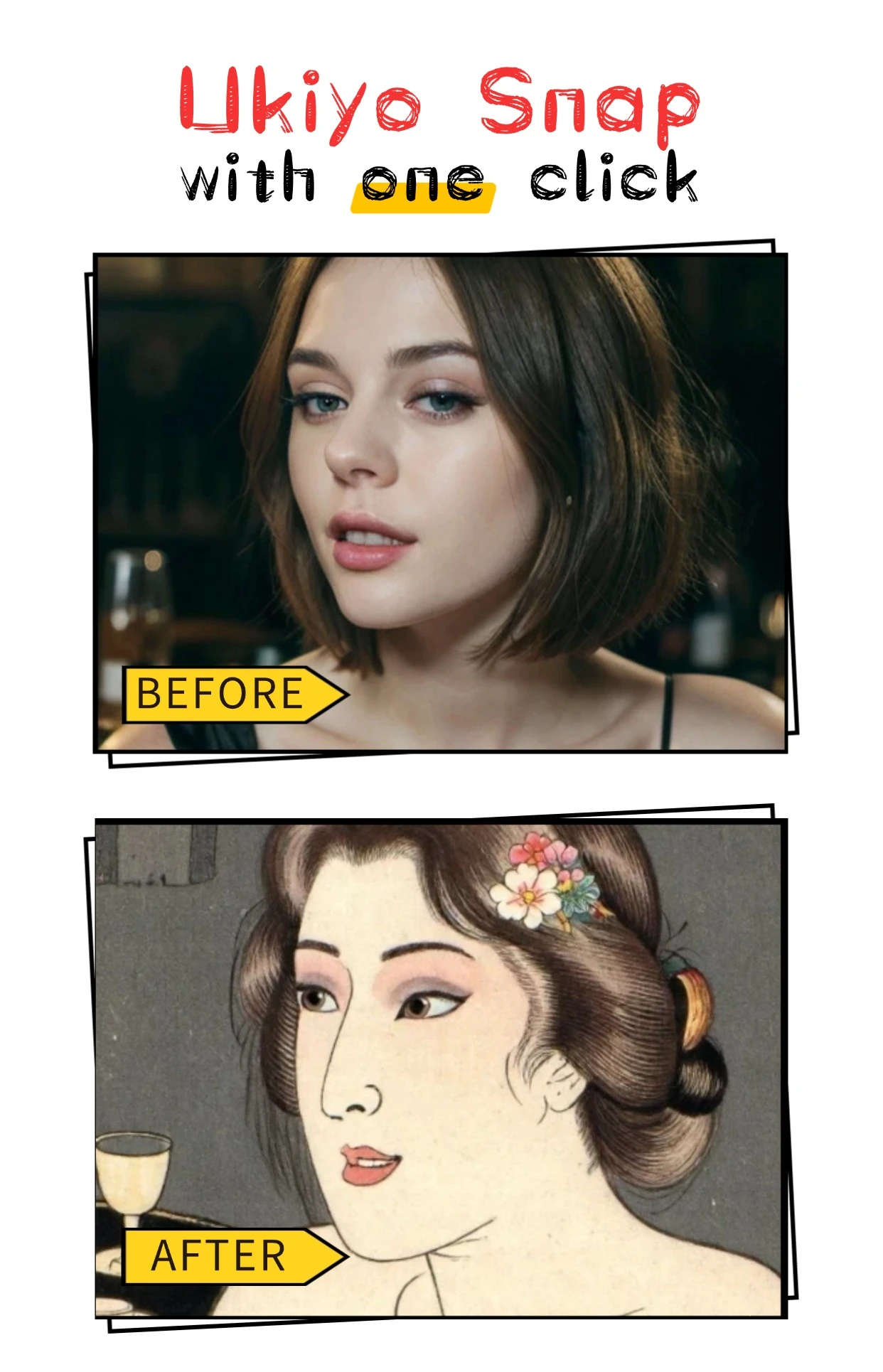 Just upload a photo,Experience the brushstrokes of the Ukiyo-e masters of the Edo period immediately。Let your photos transform into poetic Japanese traditional paintings。