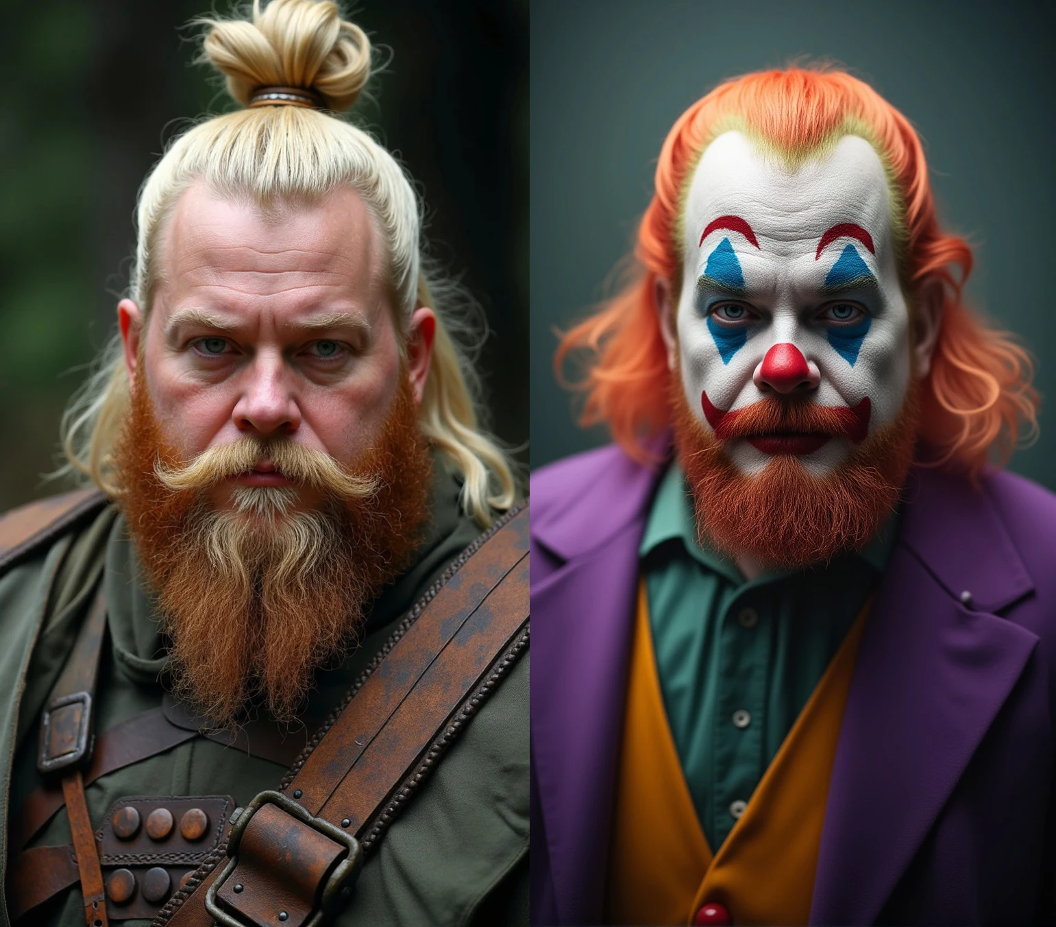 Transform your input images to clown themed output, using face swap and flux models, while mostly preserving general composition.
