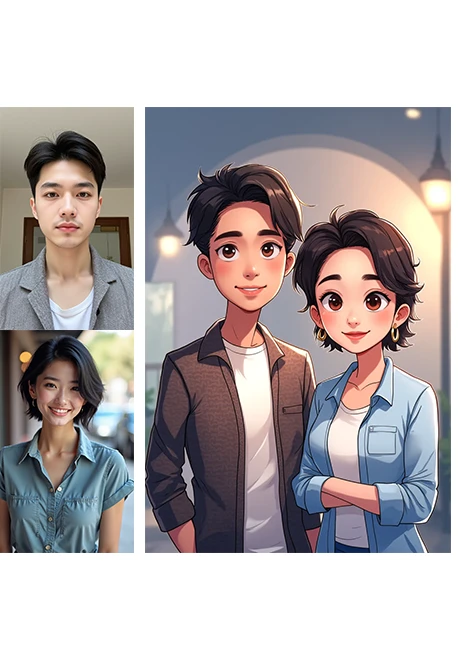 Please upload character pictures in order: 1. Upload male pictures; 2. Upload female pictures; 3. Click Create.