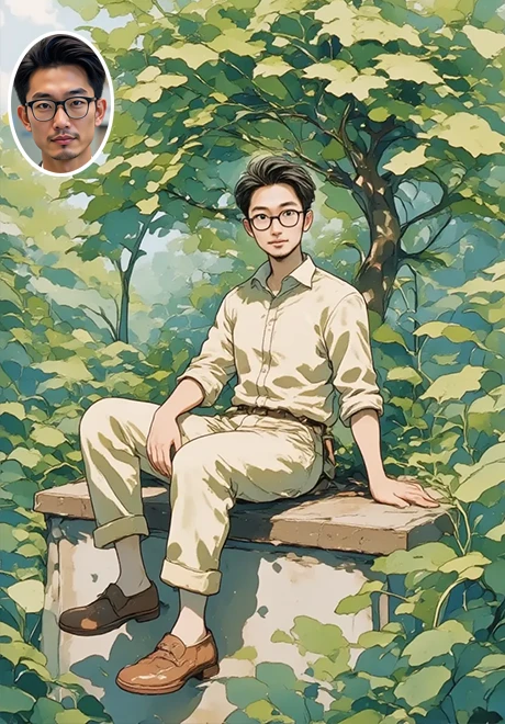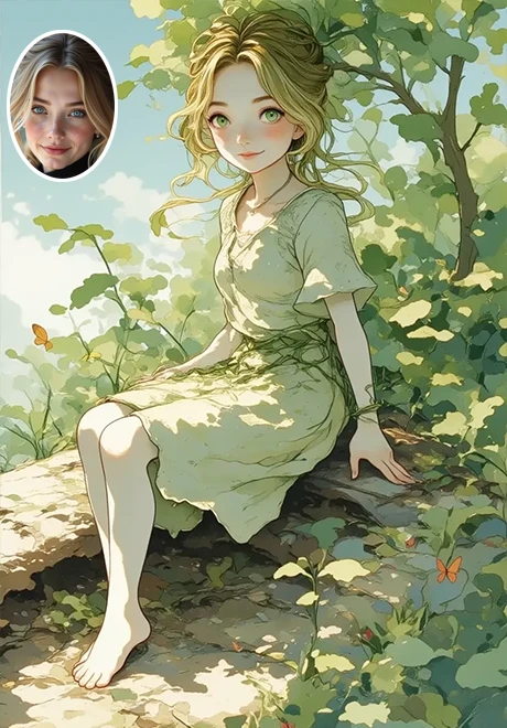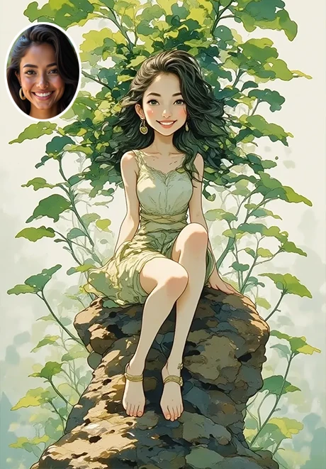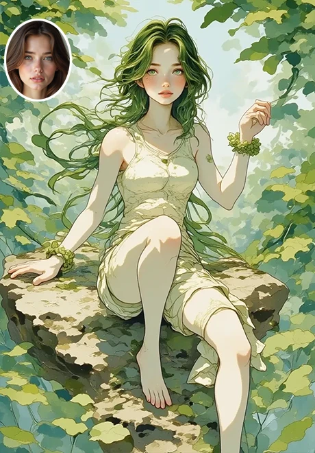 Upload a clear portrait, then click "Create" to generate a green-themed and fresh syle illustration.