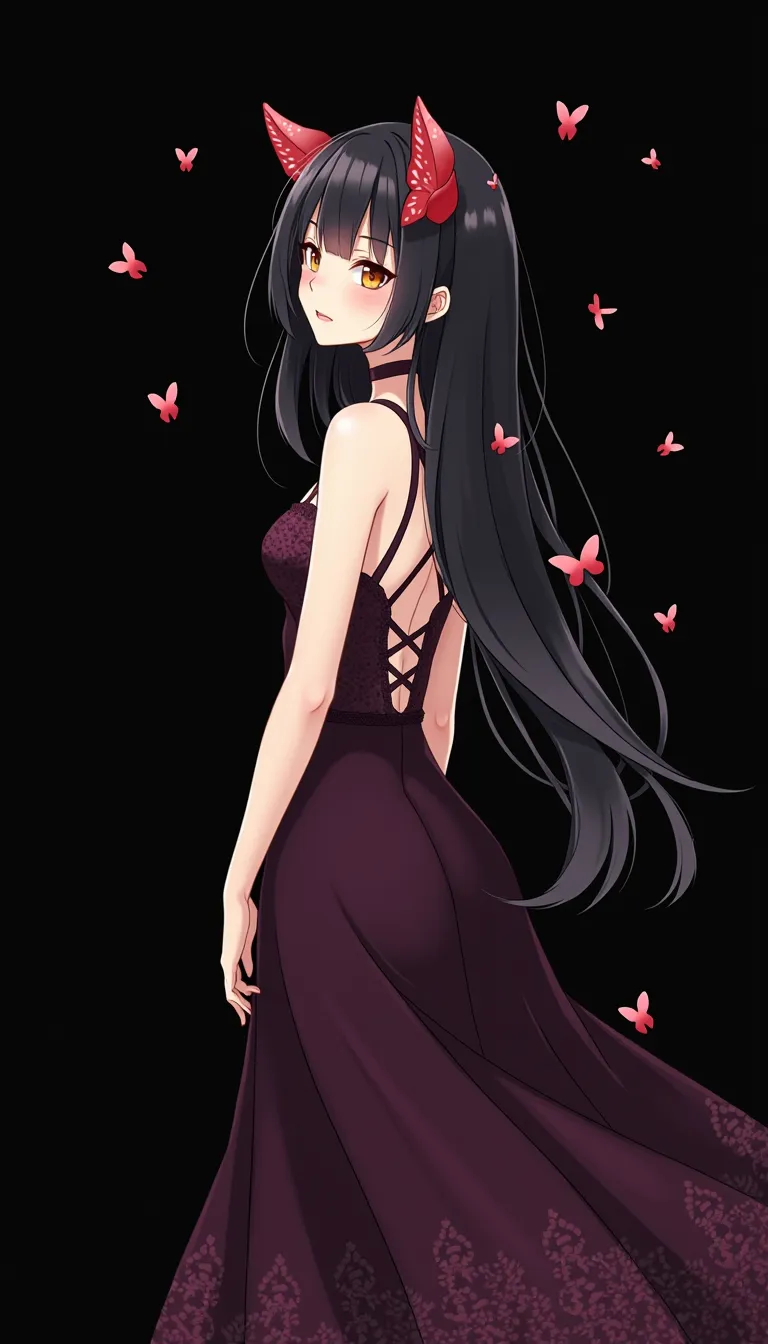 Create a magestic girl in a gown surrounded by autumn leaves like butterflies. You have full control.