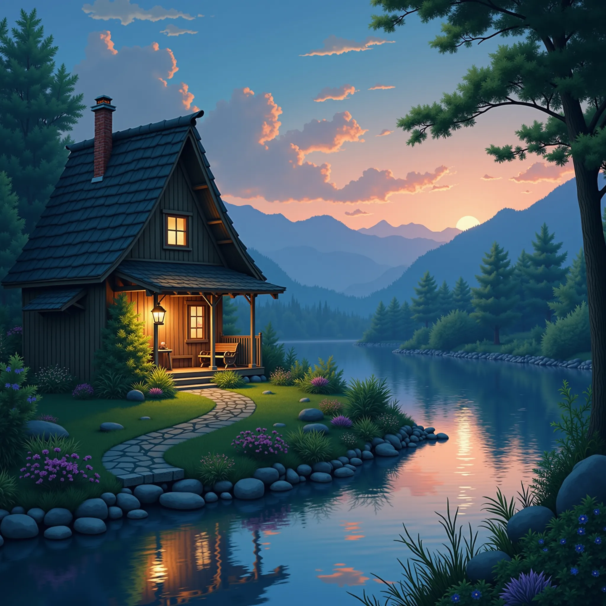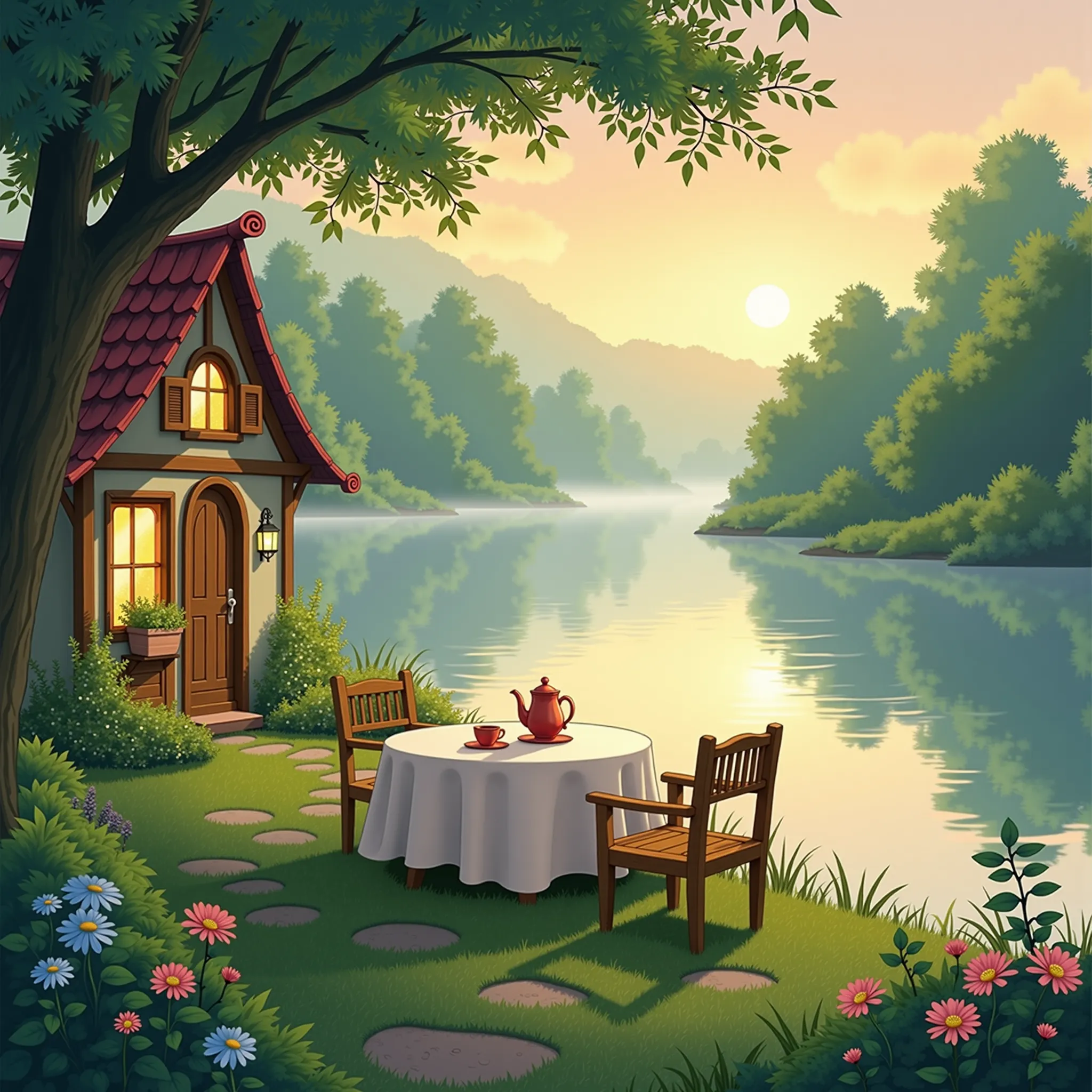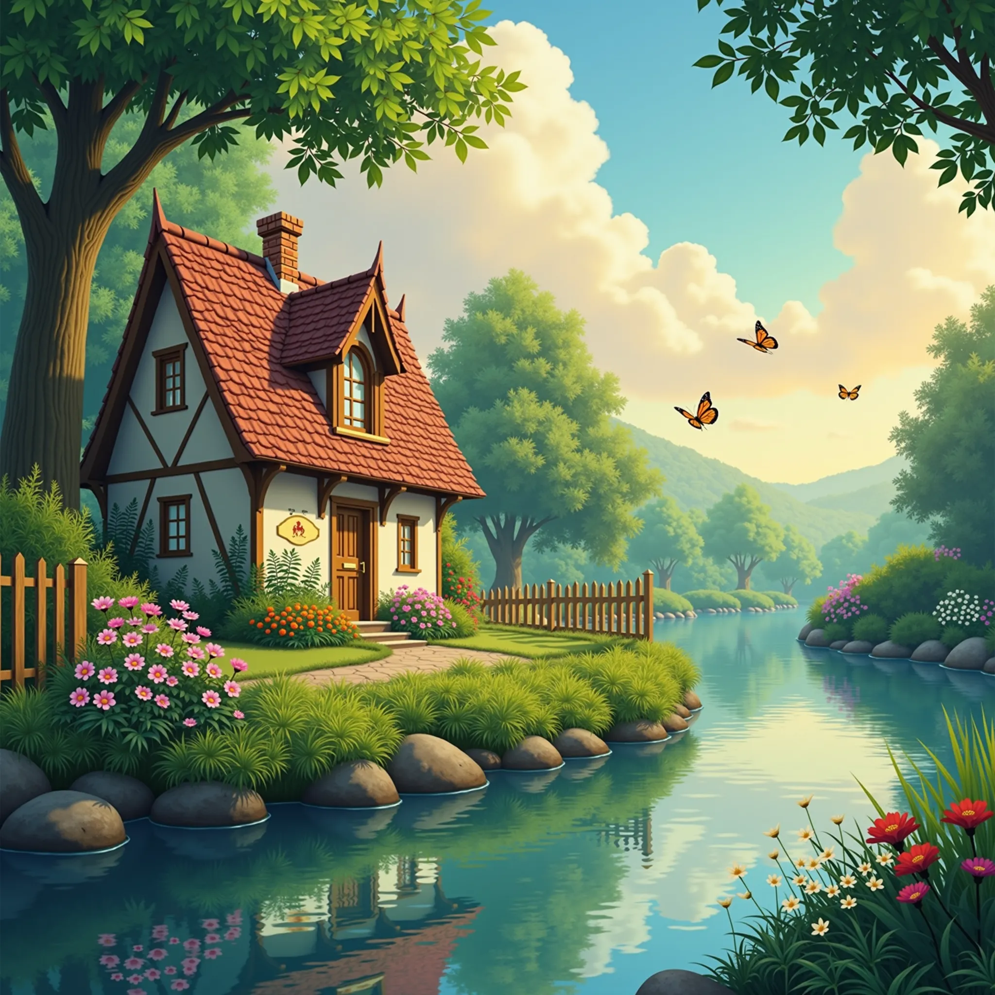 Discover the charm of Riverbank Reverie, where cozy cottage life meets lush riverside beauty. Personalize serene scenes filled with warm sunsets, gentle waters, and peaceful nature. Create your own cinematic moments of calm and joy.