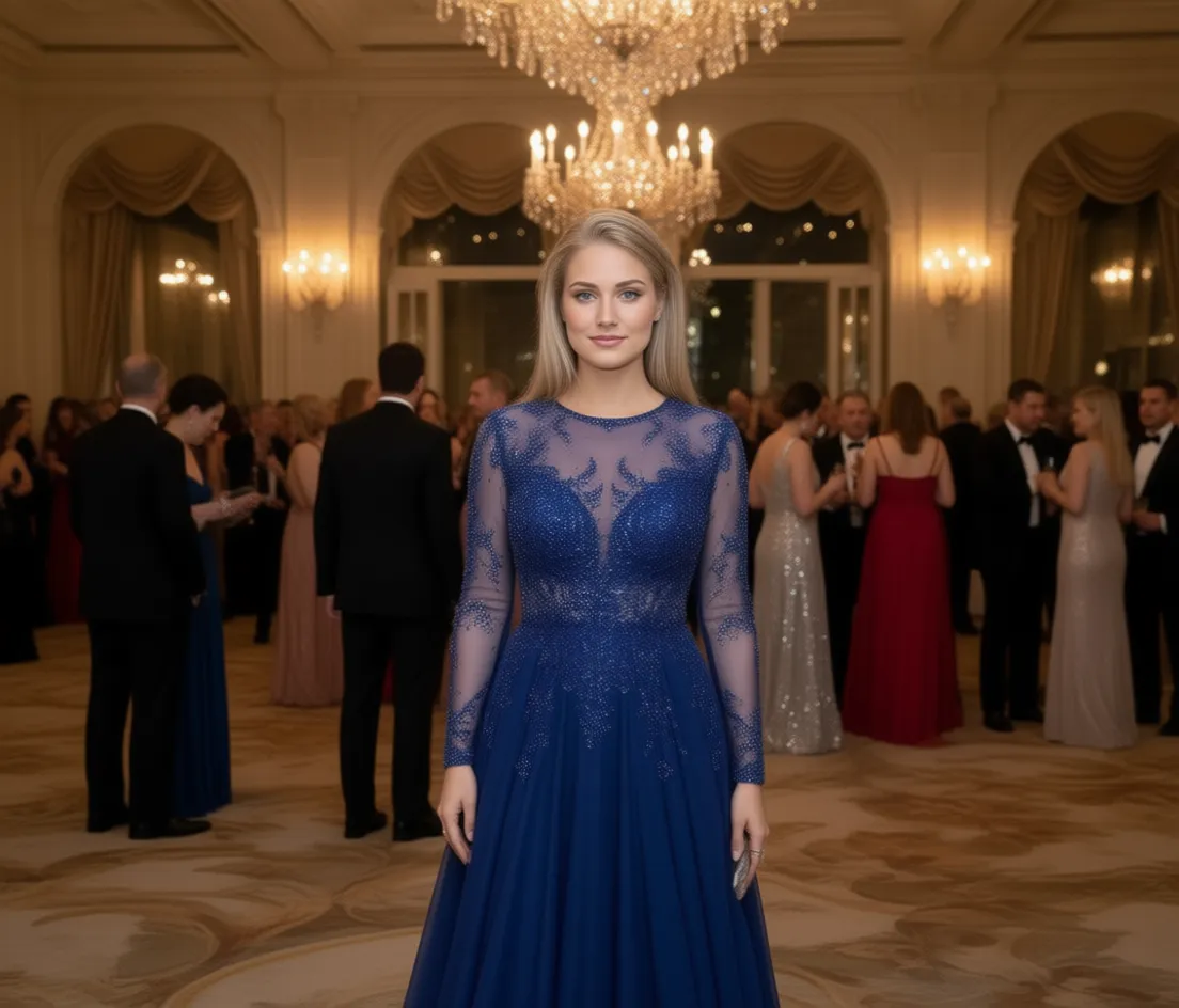 Step into high society with a floor-sweeping jewel-tone gown adorned in intricate beadwork. Perfect for red carpets and grand galas—elegance guaranteed.Dress to impress, dazzle the rest.