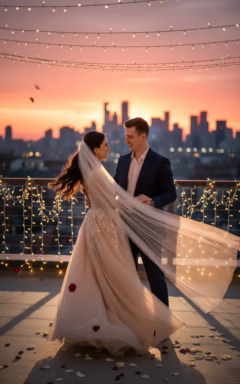 From playful glances to intimate embraces, from soft light to dramatic shadows, every detail is designed to evoke romance, warmth, and cinematic sophistication. This image is not just a picture — it is a story of love, frozen in a perfect, photorealistic moment.