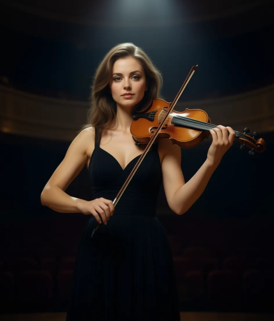 Transform your portrait into a moment of pure artistry — reimagined as a passionate concert violinist beneath a single, dramatic spotlight. Every expression, every detail, painted with emotion and elegance, capturing the quiet power of performance.