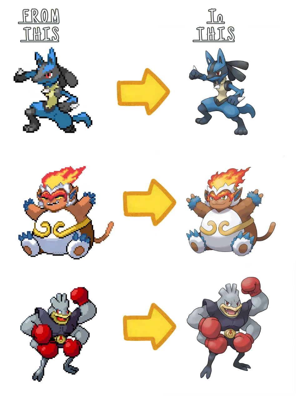 I Bring you pixelated sprites to 2d detail art maker, many of you like me wanted to see pixelated pokemon sprites or fusion sprites into detailed 2d pokemon sprite