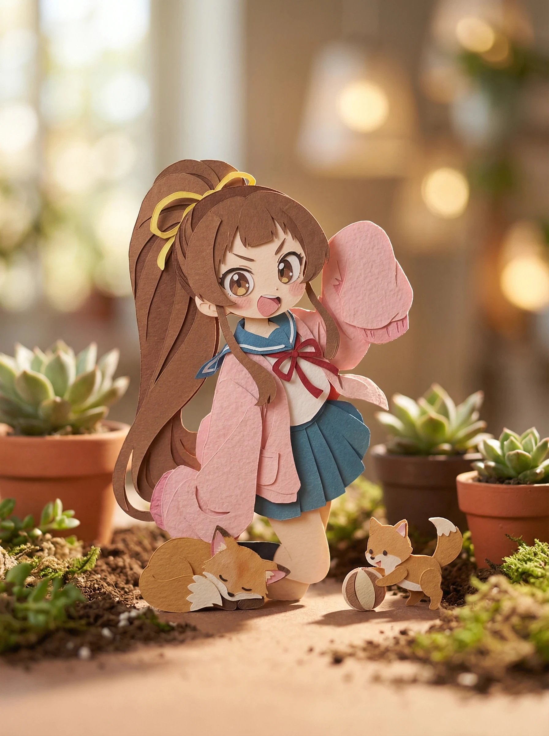 点击生成按钮,系统将一键构建完整的治愈系剪纸微缩场景。满意后,下载并保存作品到你的设备。