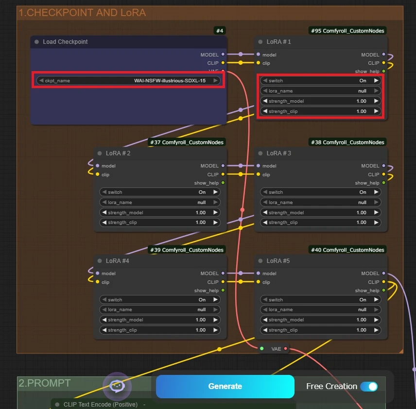 The base model and LoRA are configured here.