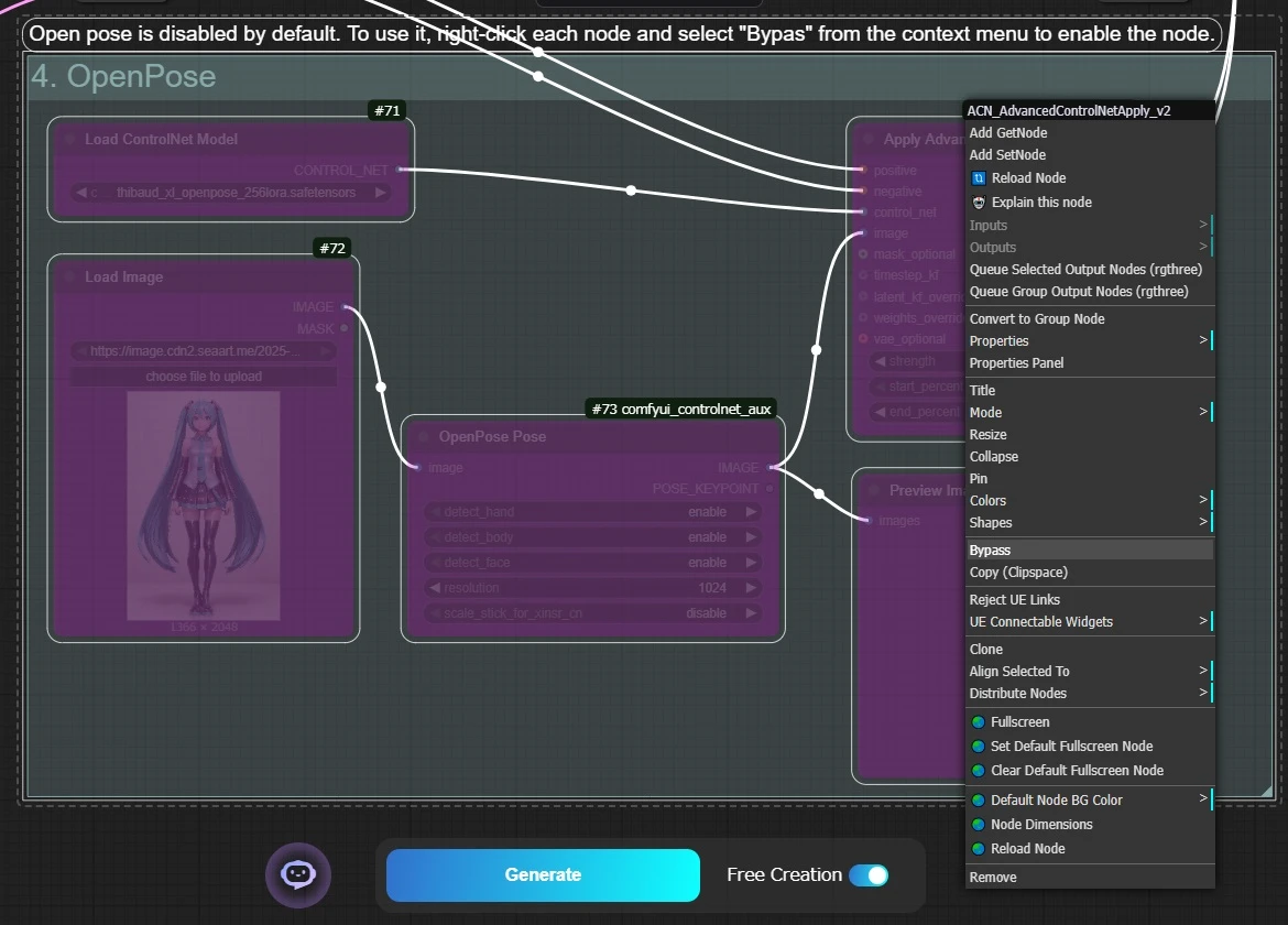 OpenPose is bypassed by default and disabled.