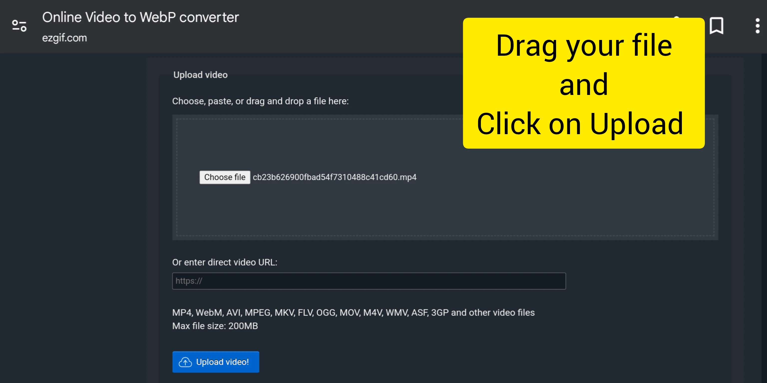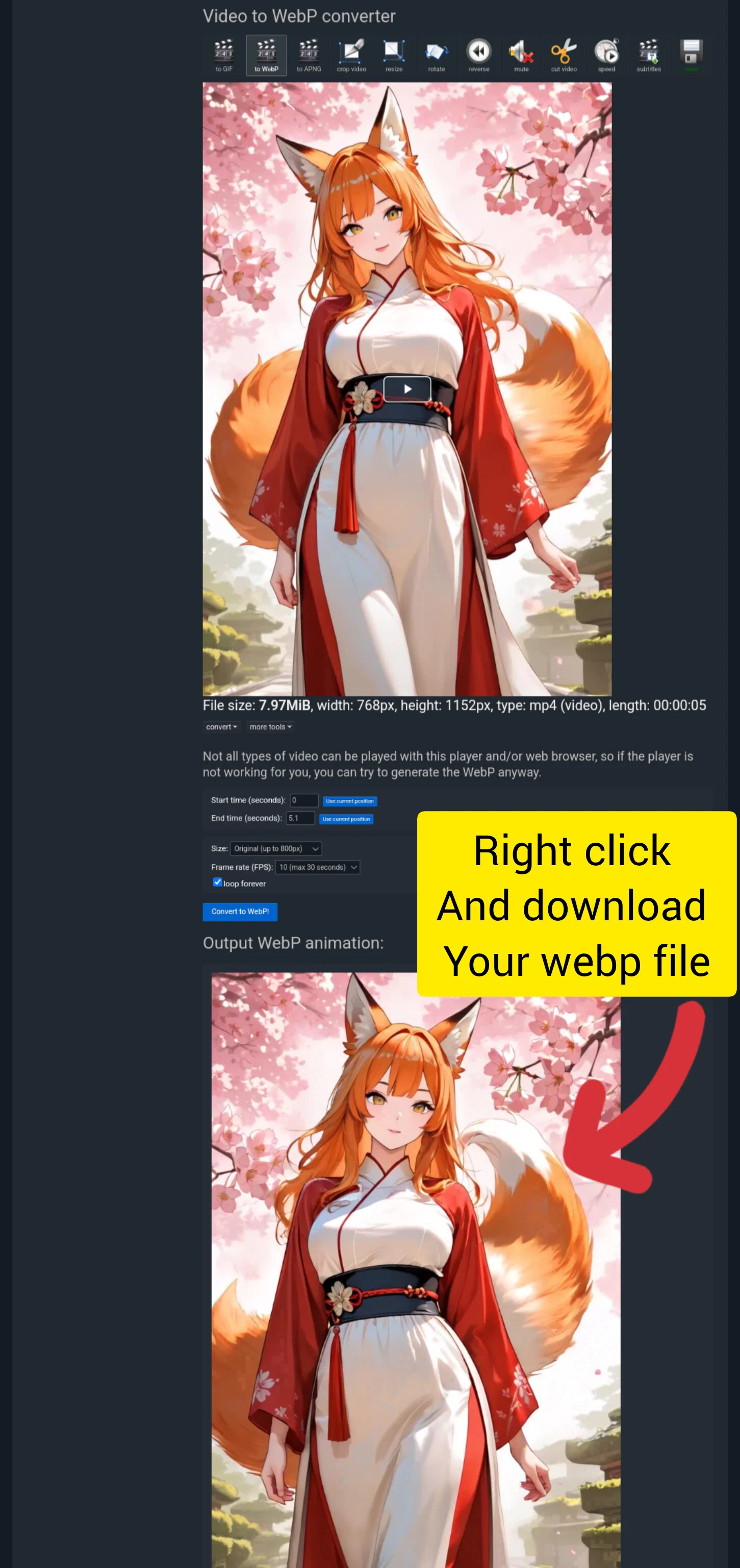 Since SeaArt does not support GIF, you need to convert MP4 or GIF files to WebP. Here’s how: