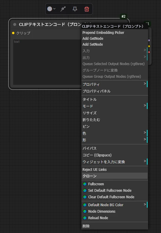 ノードの上で(右クリック)→【クローン】を選択することで複製できます。